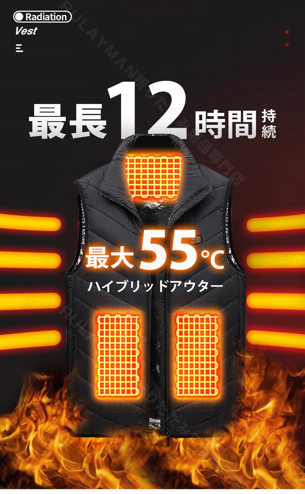 電熱ベスト ヒートジャケット バイクウ トップス ベスト ジレ 豊富 ブラック ブルー S M L XL XXL XXXL