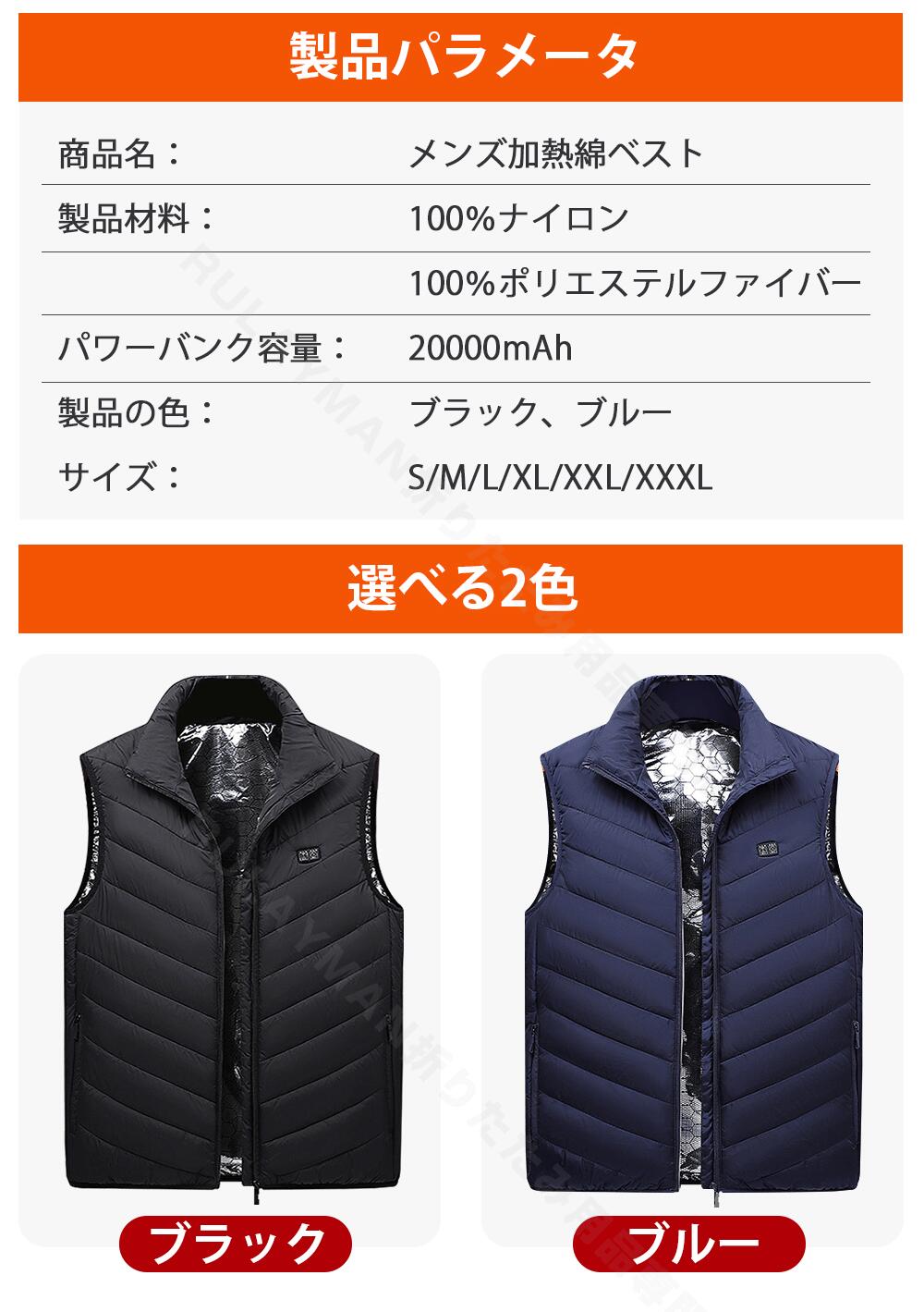 電熱ベスト ヒートジャケット バイクウ トップス ベスト ジレ 早い者勝ち ブラック ブルー S M L XL XXL XXXL
