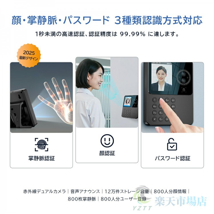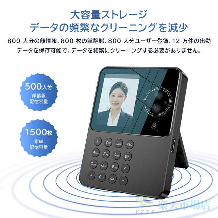 タイムレコーダー 勤怠管理機 顔認証 パスワード 掌静脈認証 出勤レコーダー 勤怠レコーダー 電子タイムレコーダー USBデータ管理 120,000レコード 800顔対応 800ユーザー 自動集計機能