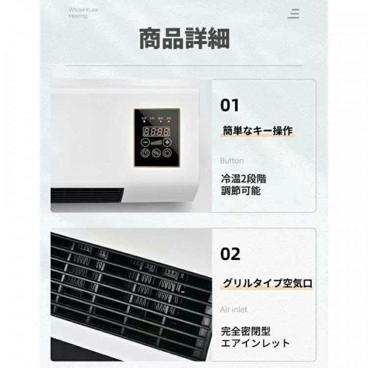 1.冷暖房:家全体の一定温度暖房、冷暖房、光なし、低騒音、冷温2段階調節可能。