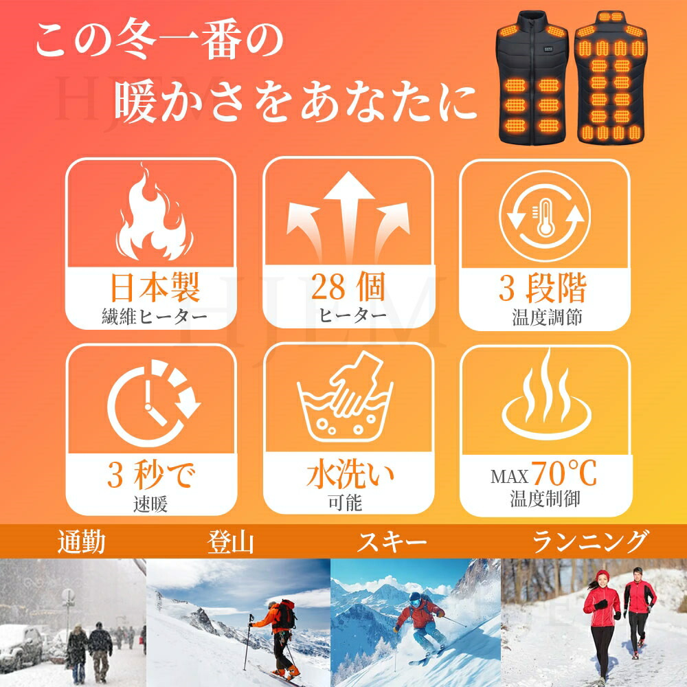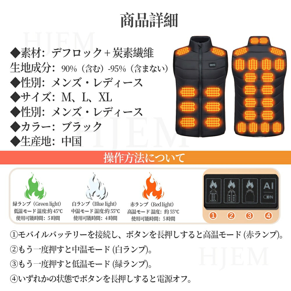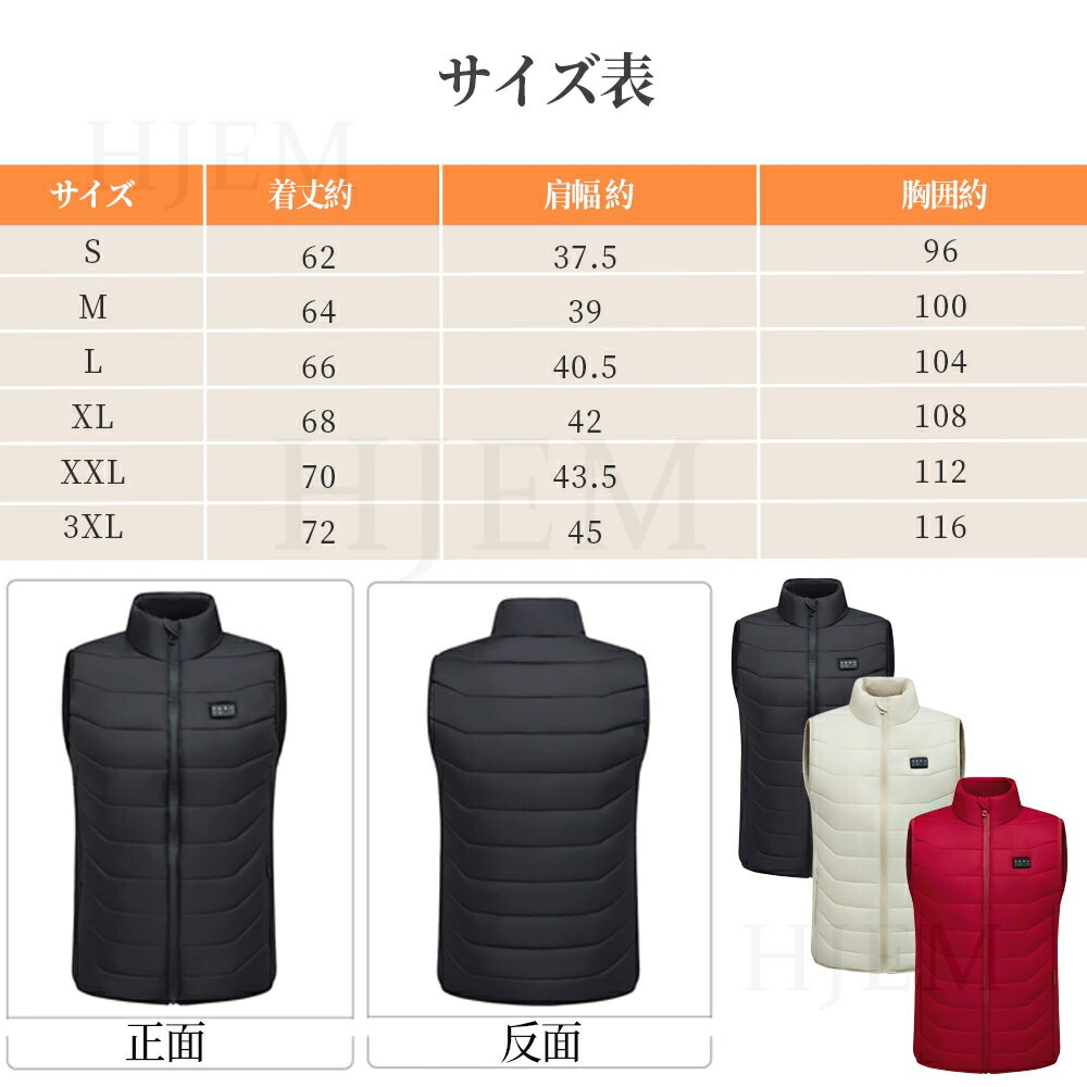 電熱ベスト ヒーターベスト レディース メンズファッション 豊富 ブラック ホワイト レッド M L XL 2XL 3XL