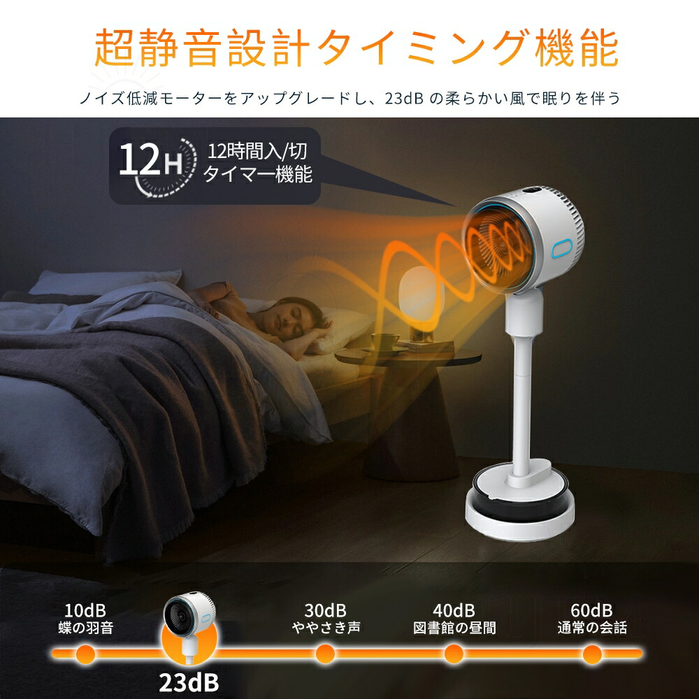 【振動・広角送風、12Hタイマー】自動で左右 回転する機能があり、15~25畳の部屋に広い範囲の涼しさと暖房をもたらすことができます。暑い季節は涼しさが素早く部屋に広がり、寒い季節は暖房範囲を拡大し、隅々まで涼しく、暖かくすることができます。新しい扇風機には 1-12 時間のタイマーが内蔵されており、設定した時間で自動的にオフになり、夜間に静かで快適な環境を作るのに最適です。また、快適で爽やかな室内環境をお届けします。