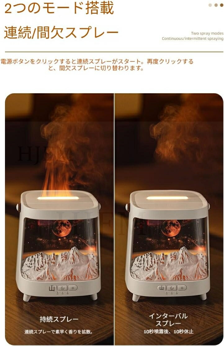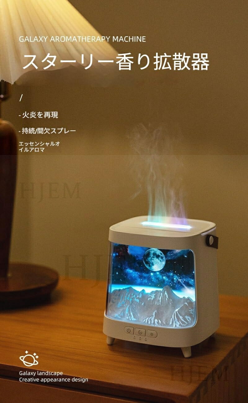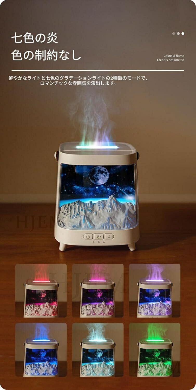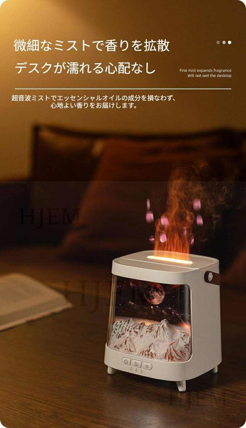 この超音波加湿器は、独自の擬似炎効果で、深いリラックス空間を演出します。内蔵のカラフルなLEDライトは、色と明るさを調整できます。コンパクトなデザイン(13×13×15cm)は卓上にぴったり。静音設計でオフィスやデスクの邪魔になりません。大容量の水タンクは乾燥を効果的に防ぎ、スタイリッシュな空間を演出します。