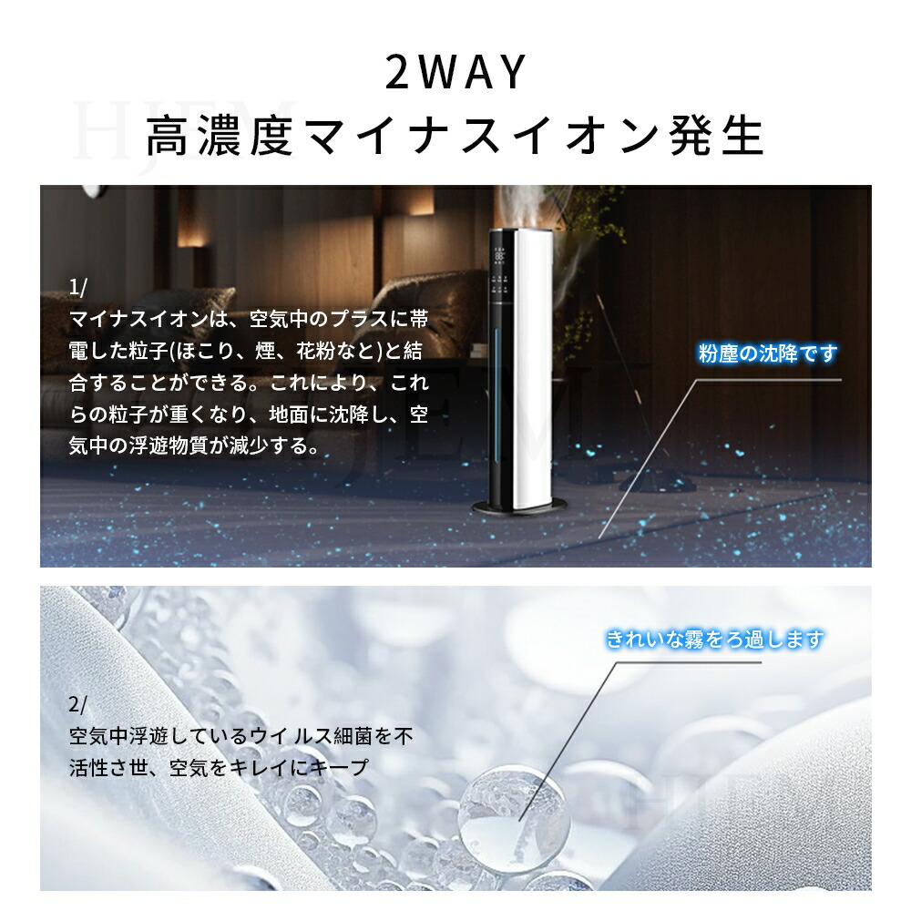 加湿器 超音波式 大容量 タワー型 uv除菌 マイナスイオン 9L 4重除菌 48H連続運転 自動湿度調節 空焚き防止 上部給水 スチーム式 空気清浄機 上から給水 花粉 省エネ 最大噴霧量3 静音