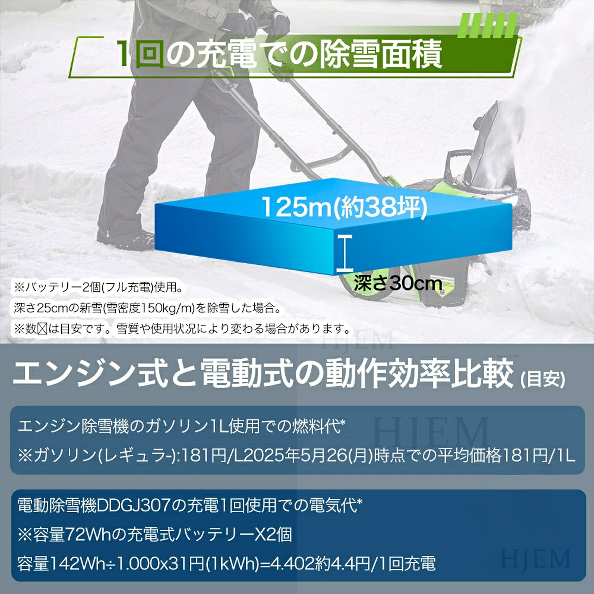 【大容量リチウムバッテリー & 高性能この電動除雪機】