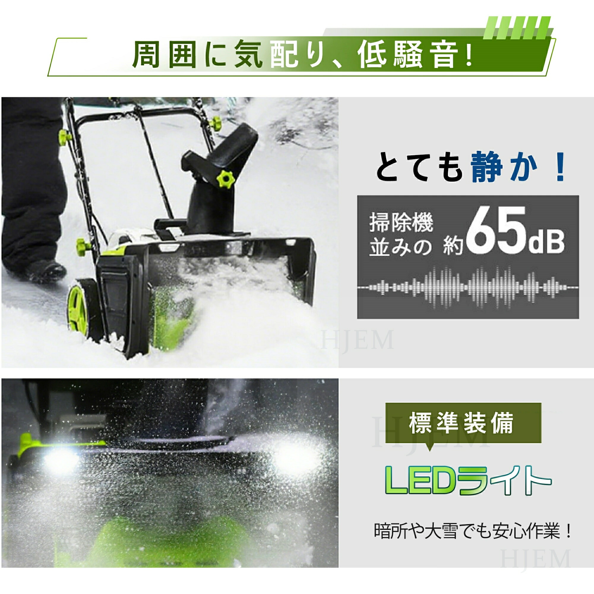 この電動除雪機は、双LEDライトを搭載しており、夜間や暗い場所でも道をクリアに照らします。最大7.6mの射程距離で、広範囲の除雪が可能です。さらに、除雪スコップ 電動と電動除雪機 コードレスの機能により、積雪や砂を効率的に掃除できます。2つのバッテリーが付属し、長時間の使用が可能。電動除雪機として、低騒音設計で周囲への影響を最小限に抑え、どんな場所でも使用できます。