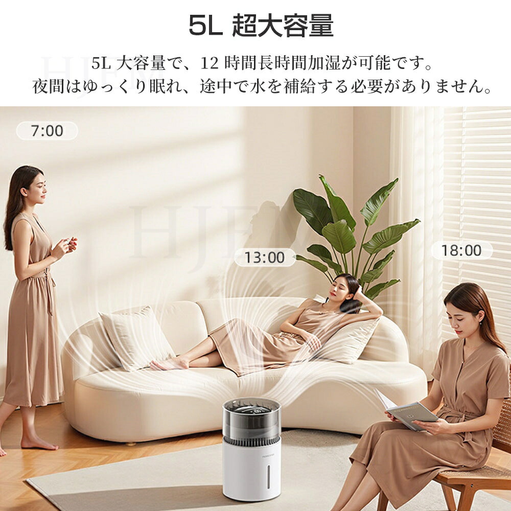 加湿器 気化式加湿器 大容量 5L 3 ホワイト ブラック