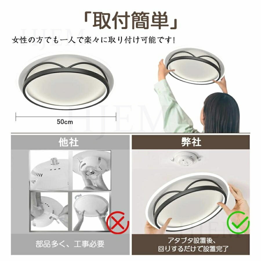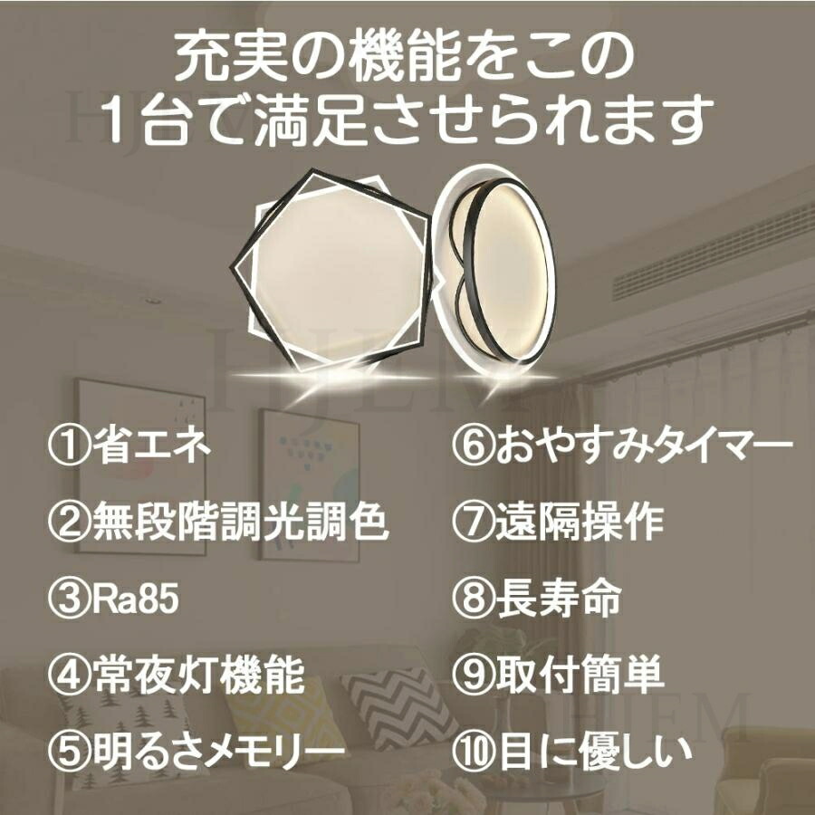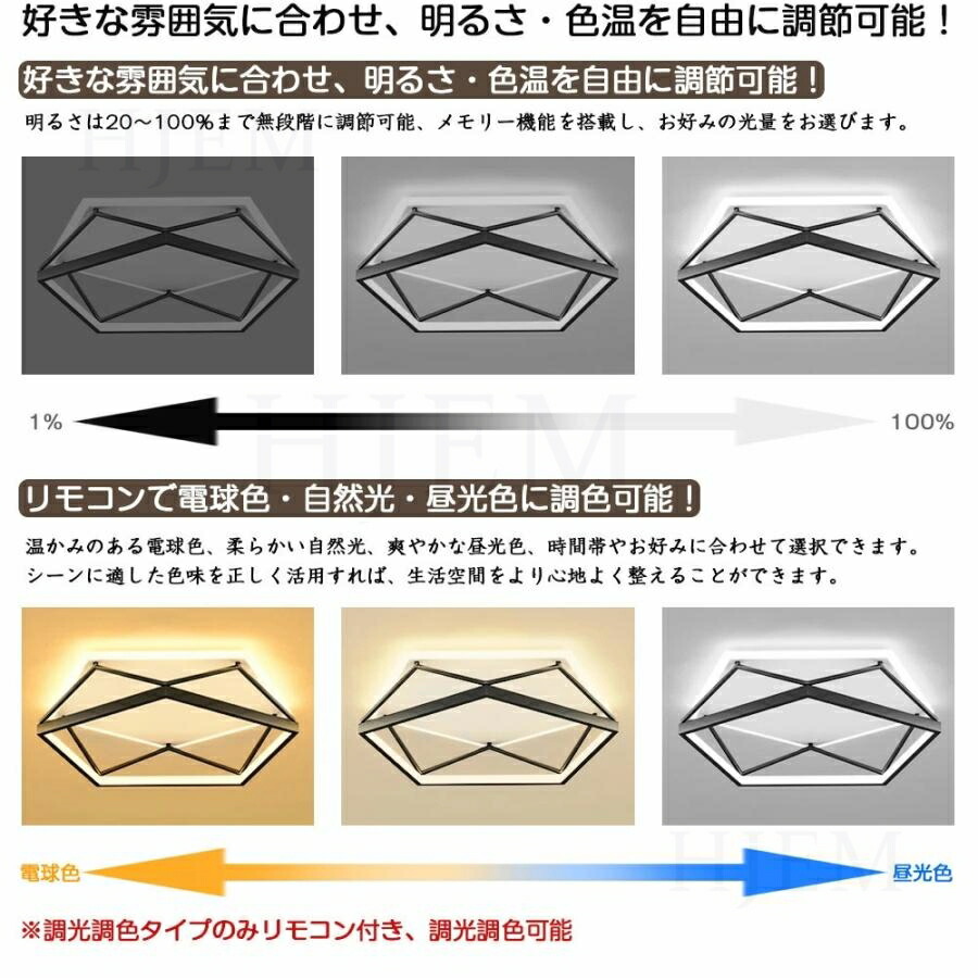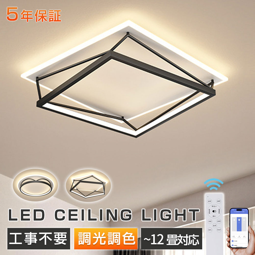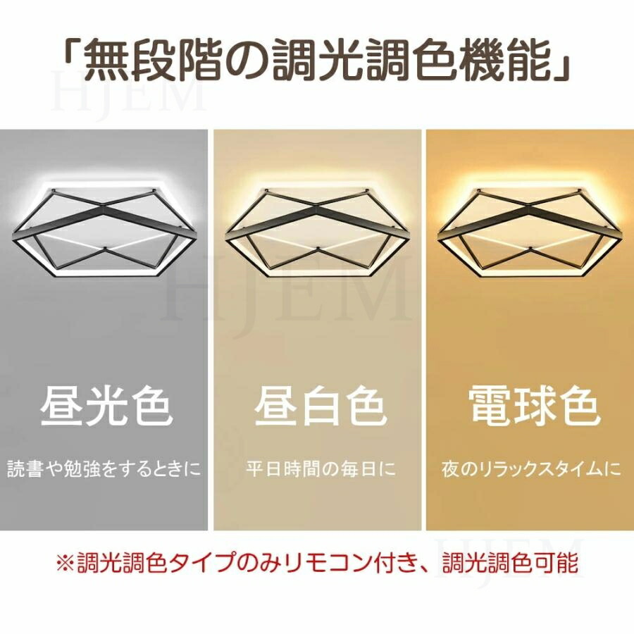 シーリングライト LED 北欧 明るい 50cm-円形 50cm-四角形 55cm-五角形 昼光色 電球色 三色切替 調光調色【リモコン付き】