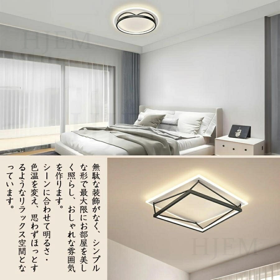 シーリングライト LED 北欧 明るい 50cm-円形 50cm-四角形 55cm-五角形 昼光色 電球色 三色切替 調光調色【リモコン付き】