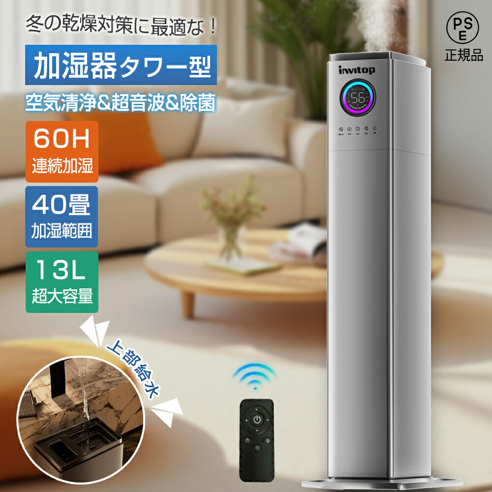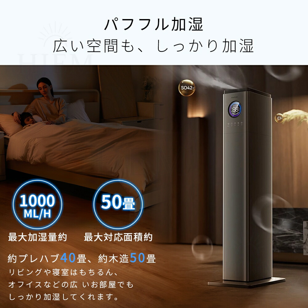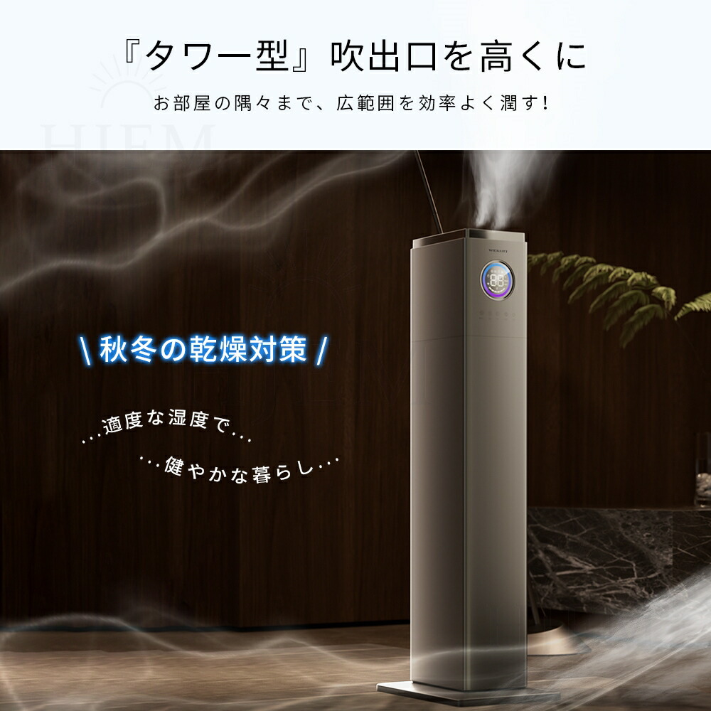 加湿器 加湿機 スチーム式 超音波 大容量 13L おしゃれ 卓上 空気清浄 UVライト付き 除菌 湿度センサー タワー型 自動湿度調節 6段階調節 最大噴霧量1000ML H 静音 節電 省 40畳