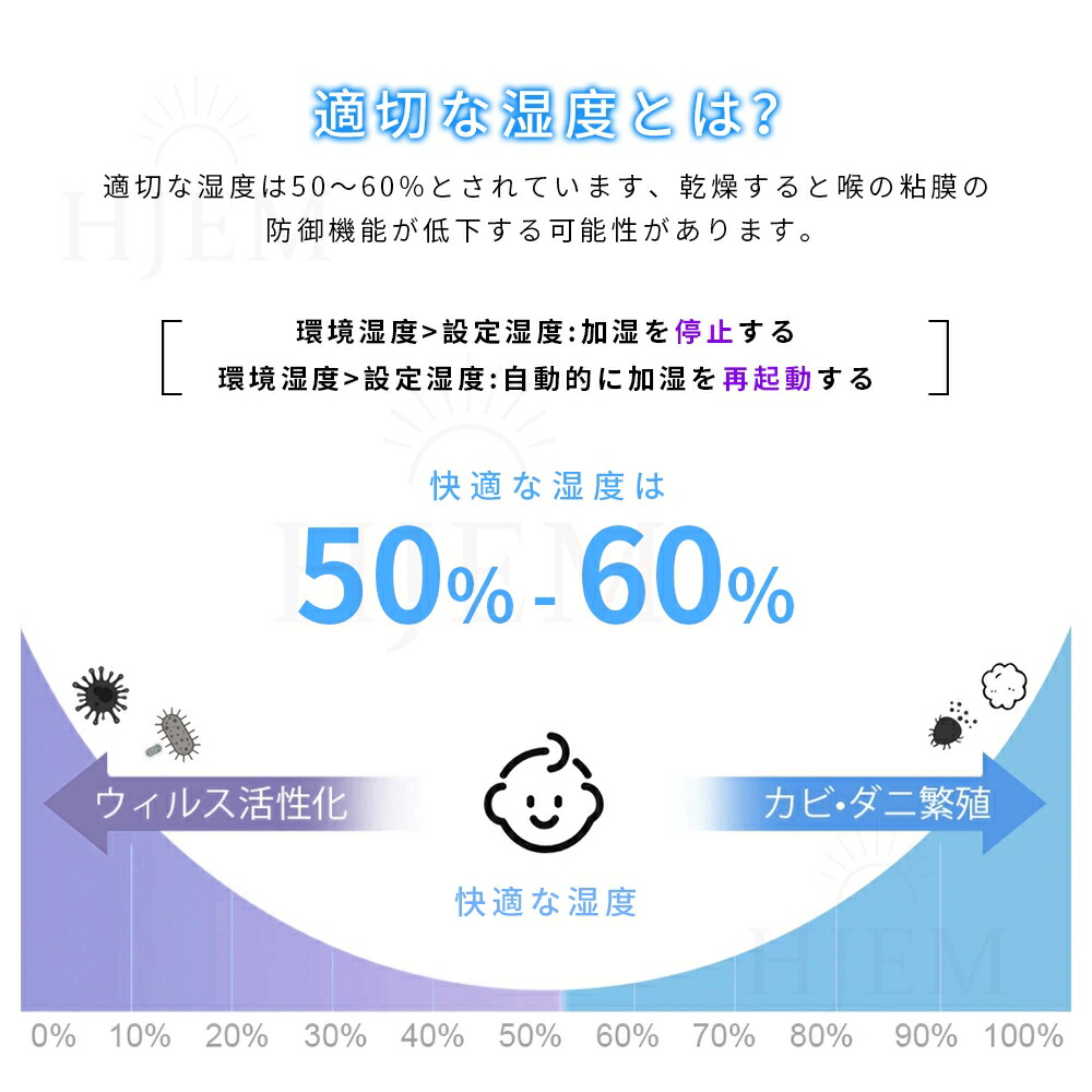 6つの加湿レベルを調整可能:この床置き大容量加湿器は6つの加湿レベルがあり、お仕事、快眠、リラックスのニーズによってお好みで切り替えることで、快適にお使いいただけます。最大530mL/hの微細なミストで連続加湿でき、ずっと潤っています。また、知能恒湿機能が付き、50%~70%の範囲で、ご希望の湿度をキープできます。環境湿度がご設定の湿度になると、自動的に噴霧を停止され、湿度がご設定の湿度に下がると、再び噴霧します。