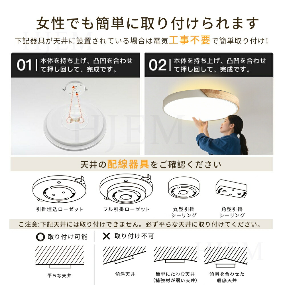 3 灯モデルは直付型の仕様で、専門の施工が必要です。安全を期して取り付けに不安がある方は、電気工事店等の業者様にご依頼することをお勧めいたします。