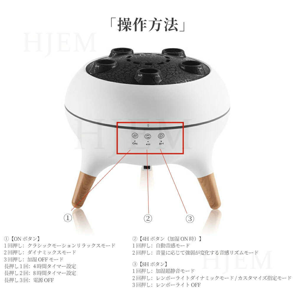 ・1回押し:自動 音感スチームモード ・2回押し:音量に応じてスチーム強弱変化