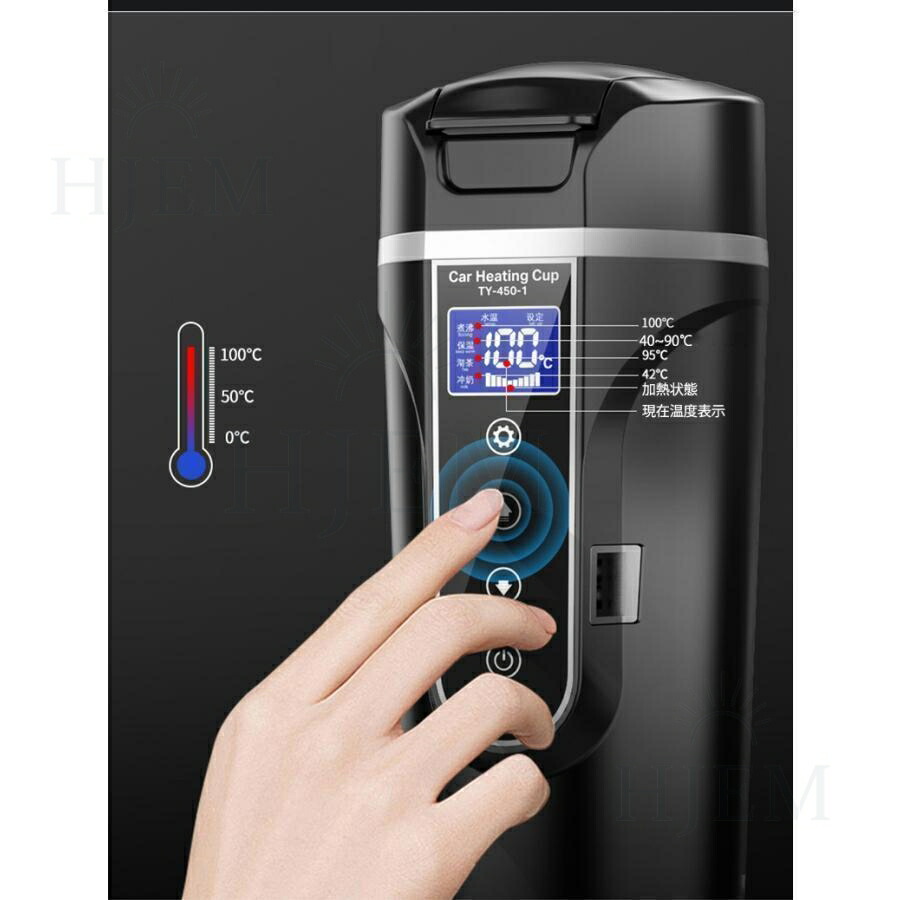 車載電気ケトル 電気ポット 保温機能付き 40℃~100℃ 500ml大容量 カー用&トラック用DC12V 24V 加熱 保温 湯沸し器 湯沸かし 湯ボルト ミニ 車中泊 LCDデ ポータブルケトル