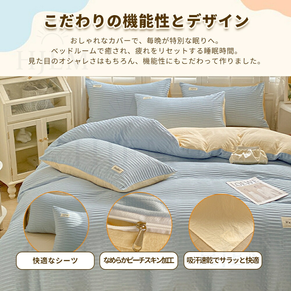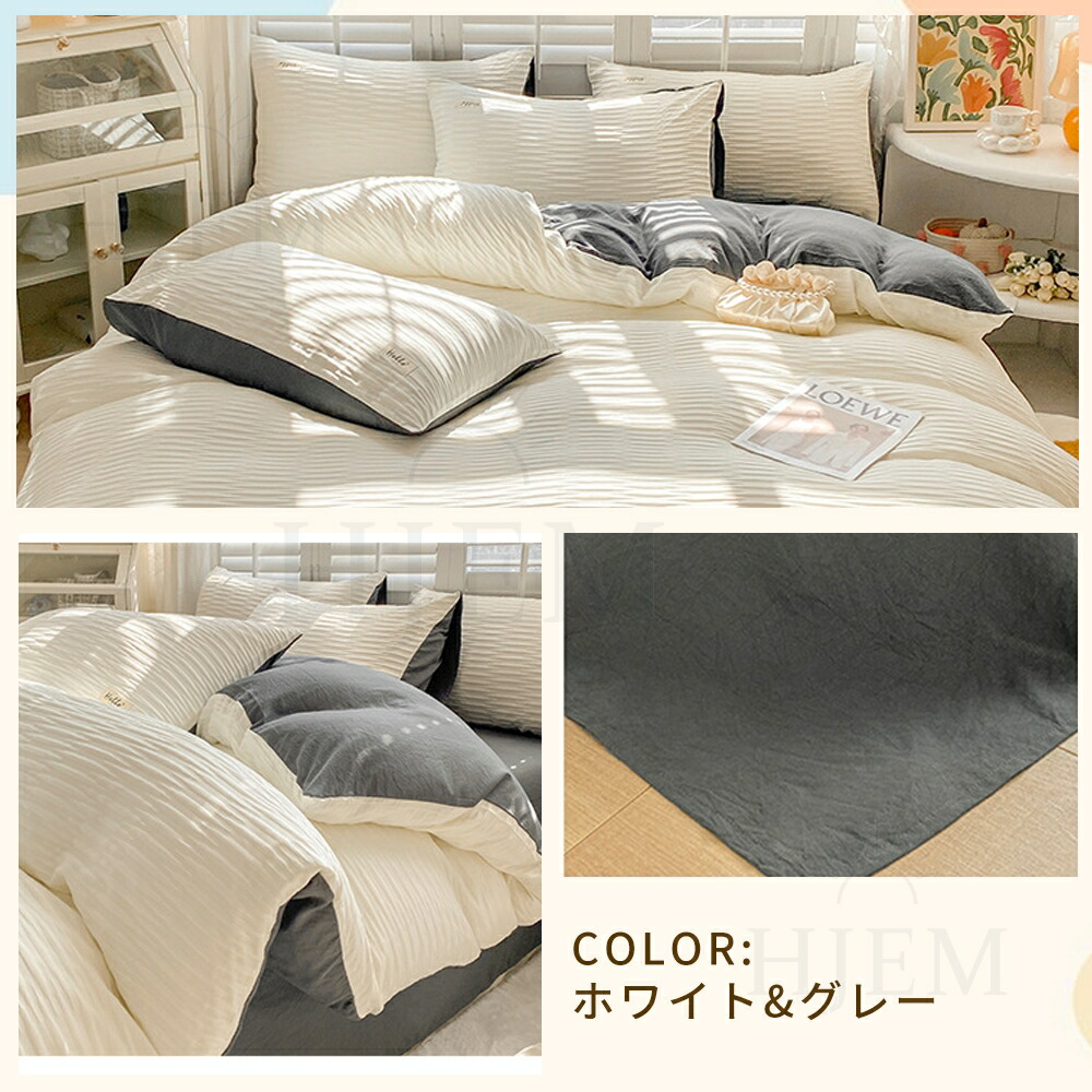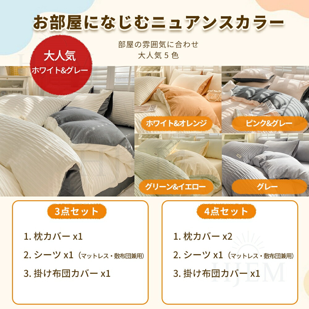 布団カバー 掛け布団カバー ストライプ 寝具 寝具カバー シーツ 寝具カバーセット 通販 S D Q ホワイト&グレー ピンク&グレー ブルー&イエロー ホワイト&オレンジ ホワイト グレー
