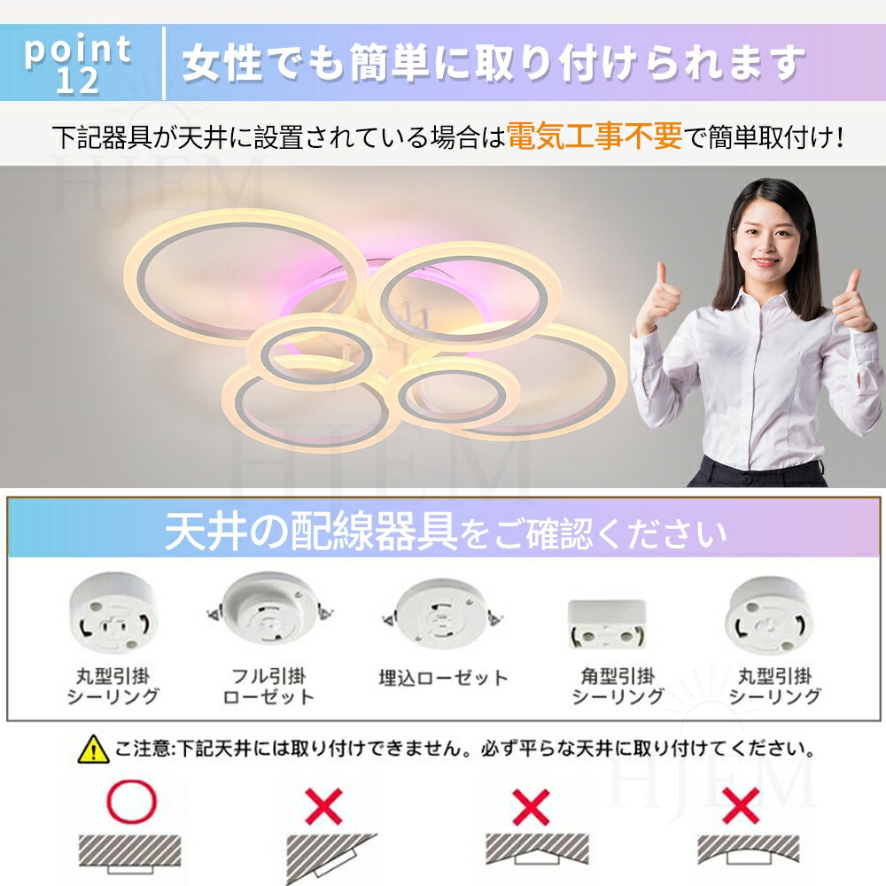 引掛シーリング式なので天井電源があれば、工事不要で天井の配線器具に差し込み、回して、後はカバーを被せて取り付け完了しました。本体重量がとても軽いので、女性お1人でも簡単設置可能。
