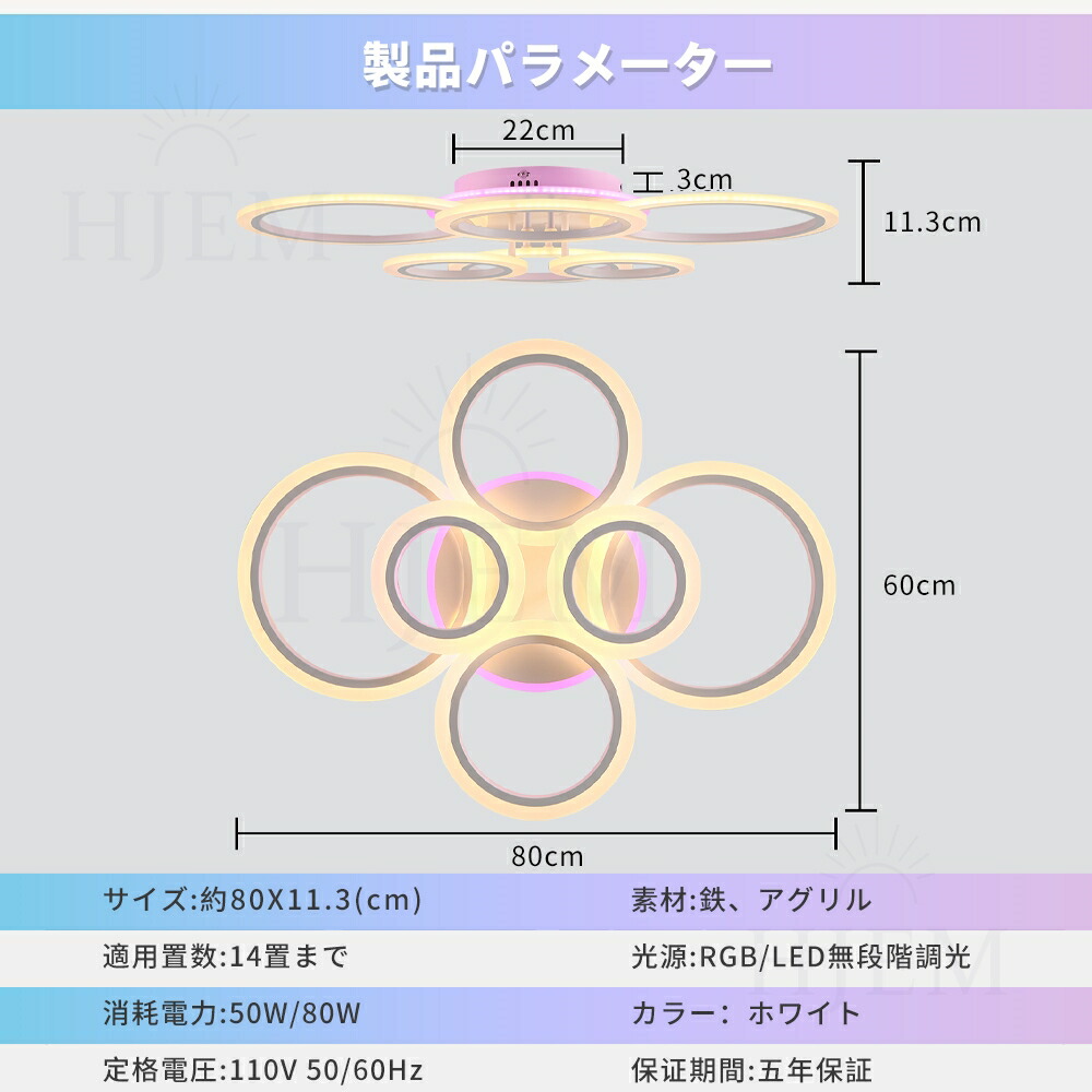 6環:W80*H11.3CM / 8~14畳 / 80W / 約3.3kg