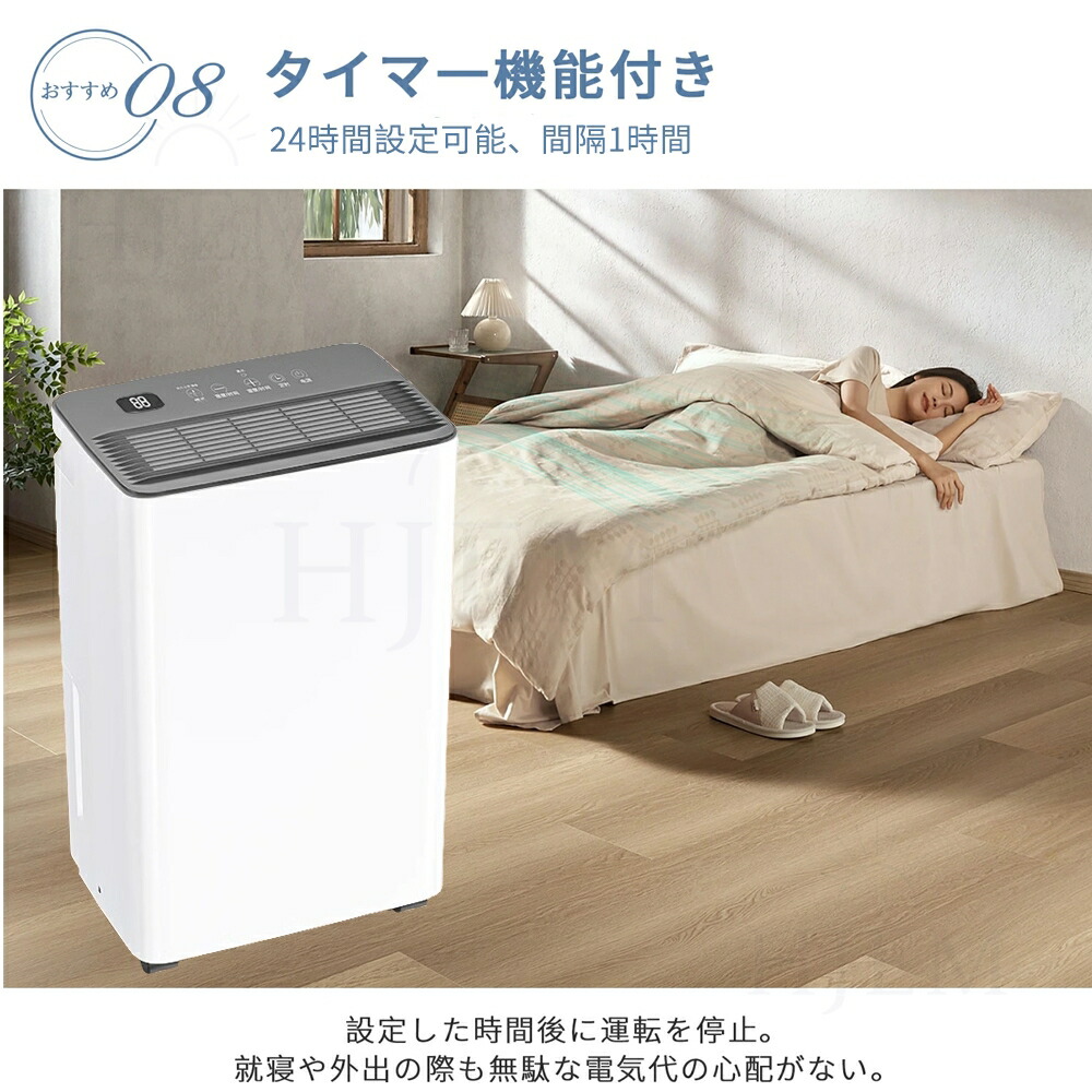 タッチパネルで、ワンタッチだけ除湿し始めます。 タイマーボタンをタッチして、12時間のが設定でき、睡眠時や外出時などの時にも安心的に除湿をできます。電源の切り忘れを防げるだけでなく、無駄に除湿をしなくていいので電気代の節約になります。じょしつき 部屋 静音に睡眠モード搭載、運転音が僅か約35dB程度で、深夜の郊外やささやき声レベルの音です。