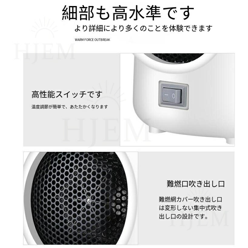 セラミックヒーター 小型 桌上 速暖 ホワイト ピンク