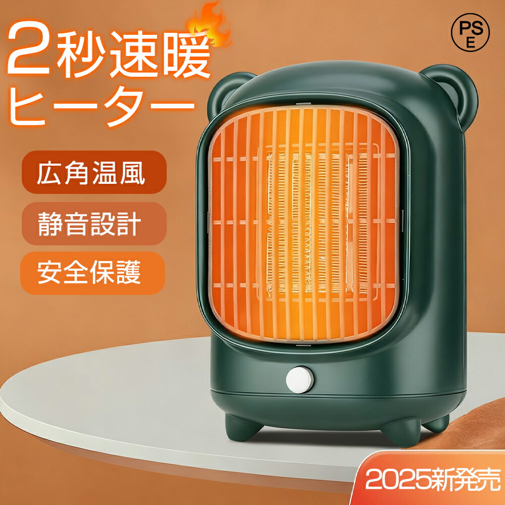 セラミックヒーター 小型 桌上 かわい グリーン ブラック