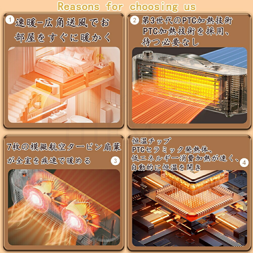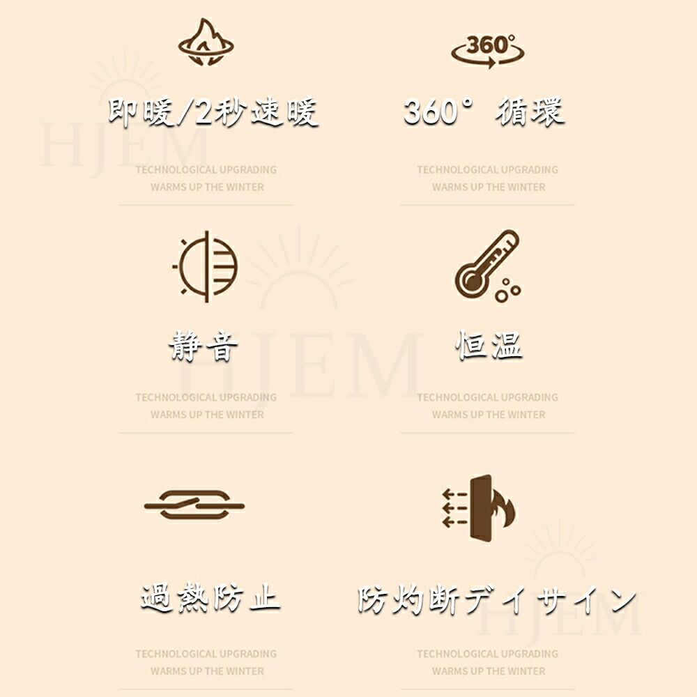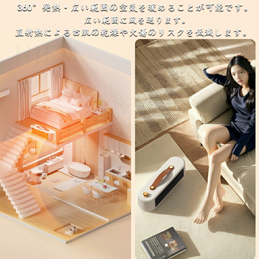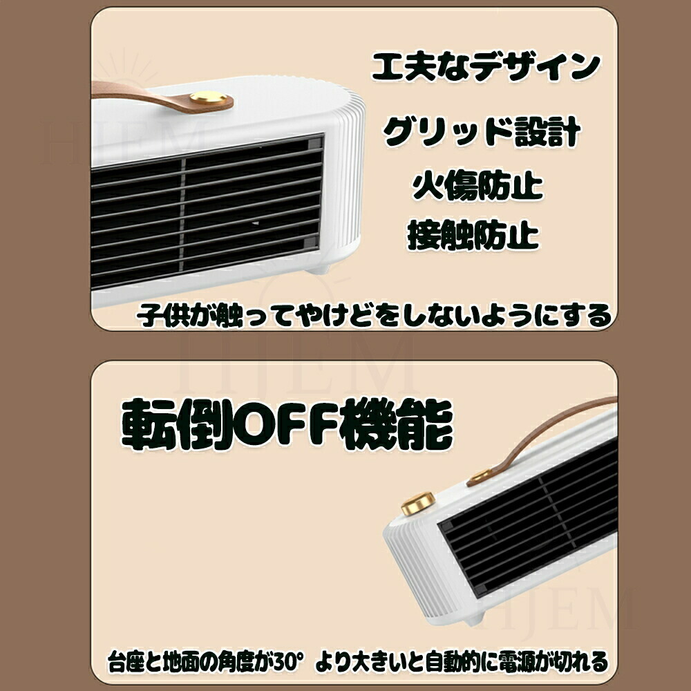 【PSE認証&多重安全設計】 複数の安全機能を備えているため、お客様のニーズに応えるために他のポータブル電気ヒーターよりも細部にまで気を配っています。「PSE認証済み」: 高い安全性を保証。「自転倒自動OFF機能」: 突発的な原因で転倒すると、ヒーターが自動停止。「過熱自動保護機能」: 暖房内部が過熱すると、サーモスタット、電流、温度ヒューズが電源を遮断。「V0級の難燃耐火素材」: 難燃性PTC素材を使用し、羽根なしセラミックファンヒーター ので、火傷も防ぎます。お子供とペットがいる家庭はご安心にお使いいただけます。