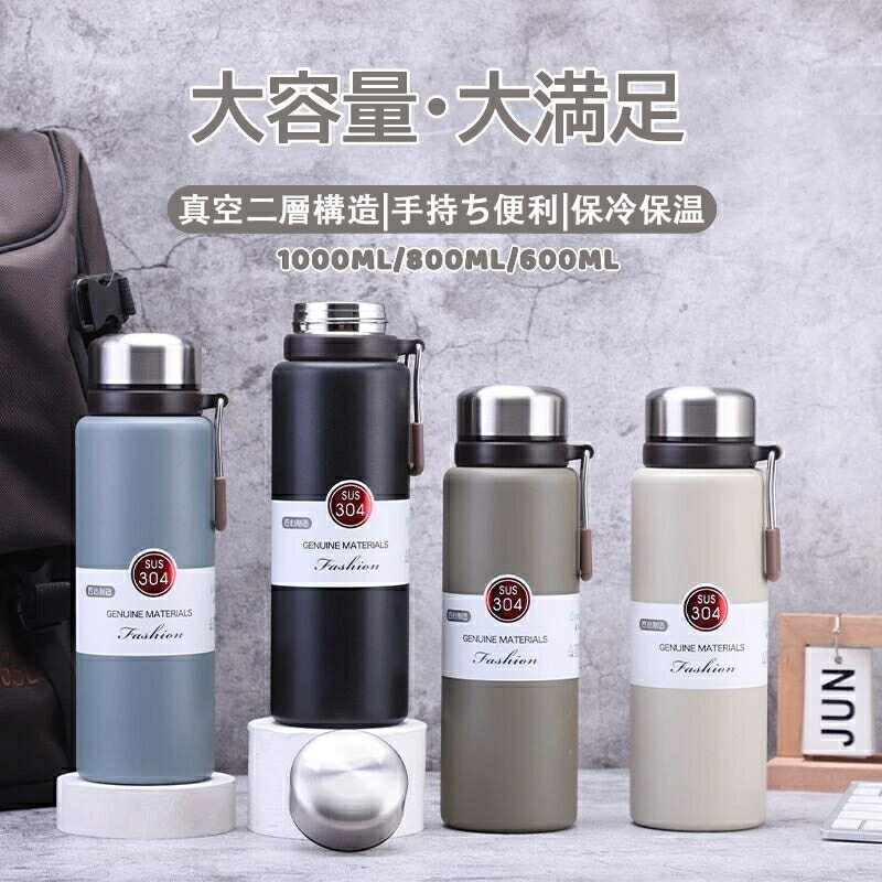 水筒 1l 1リットル 保温 保冷 大 キッチン用品 食器 調理器具 人気 ブルー カーキ コーヒー ブラック 600ML 800ML