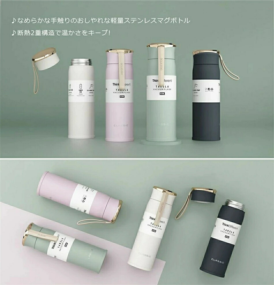 水筒 直飲み おしゃれ魔法瓶 450M キッチン用品 食器 調理器具 特集 オフホワイト ピンク 抹茶色 ネイビー
