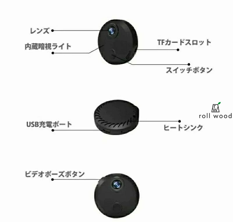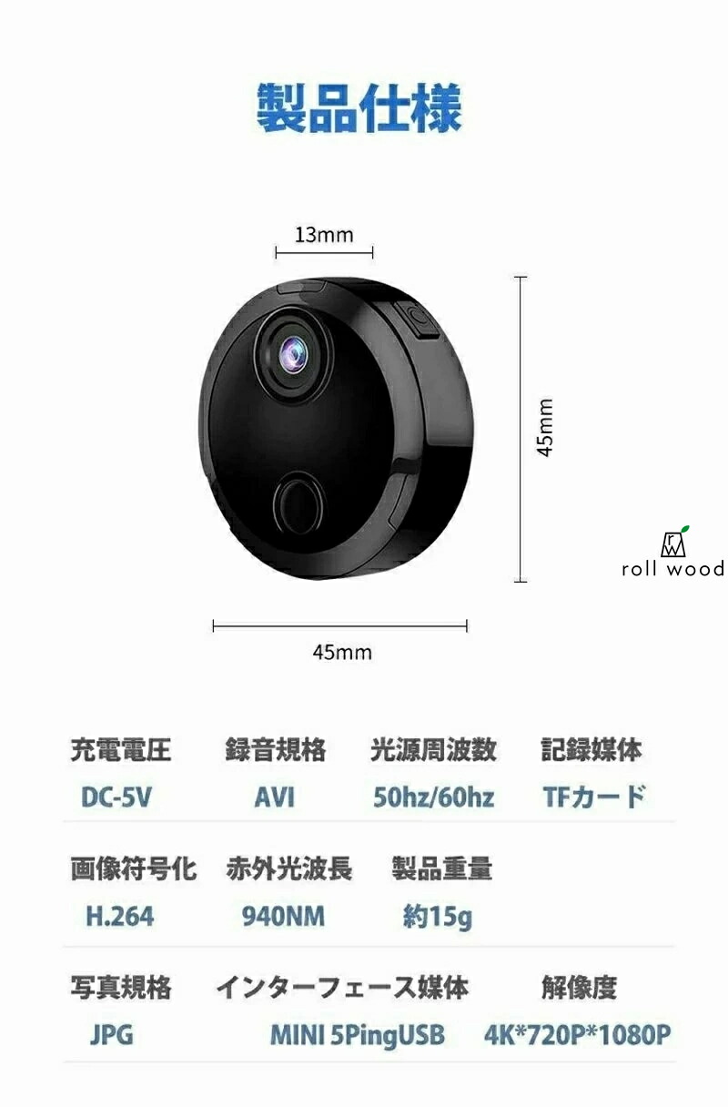 防犯カメラ 小型カメラ 隠し 1080p TFカード対応 遠隔監視 動体検知 暗視機能 赤外線撮影 動画再生アプリ保存 室内 屋外 USB充電 Android対応 持ち運び 携帯用 IOS