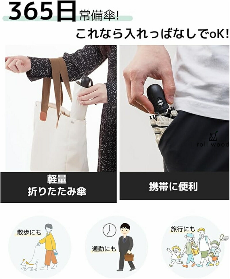 改良版は60%省力:私たちは力の弱いお客様向けに、傘の収納の重さを改良しました。折りたたみ日傘フラットなデザインで、バッグに簡単に入れることができます。折りたたんだ厚さはわずか4cm、長さは25.5cm、重さは約189gです。超コンパクトボディ 使用 携帯に便利!全天候対応でき、雨の日も雪の日も晴天も使えます。男女兼用ワンタッチ 自動開閉折り畳み傘。通学、通勤、遠足、旅行,出張などの場合がご利用できます。
