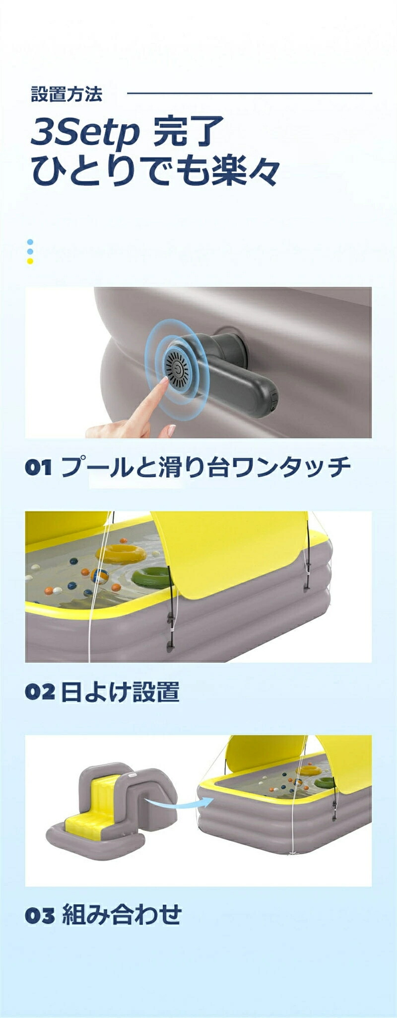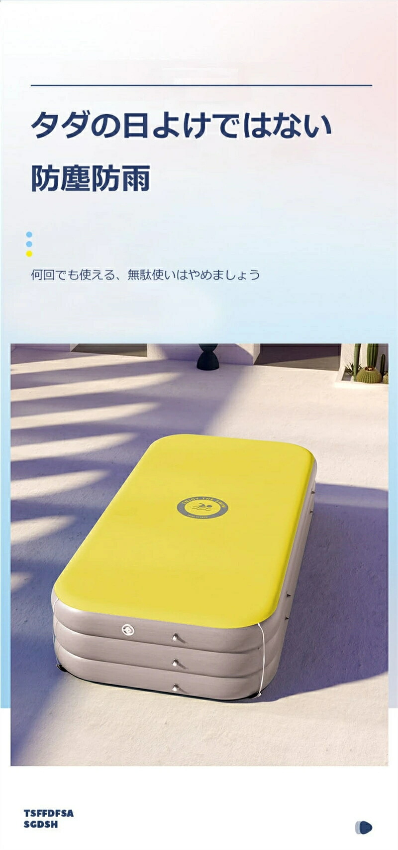 底部にも空気が注入することができ、プールの中に足を踏んでも、転んでも、傷をさせません、安全性がたっぷりです。