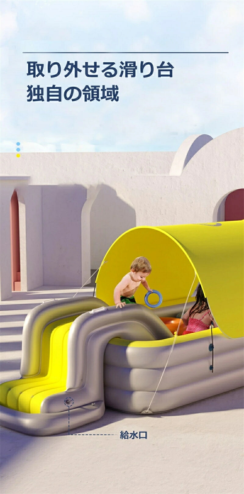 プール すべり台 滑り台 大型 ビニールプール 人気 家庭用プール テント エアポンプ 屋根付き ファミリープール 完全遮光 3サイズ 日よけ 日よけ対策 子供用プール アウトドア 水遊び 日傘