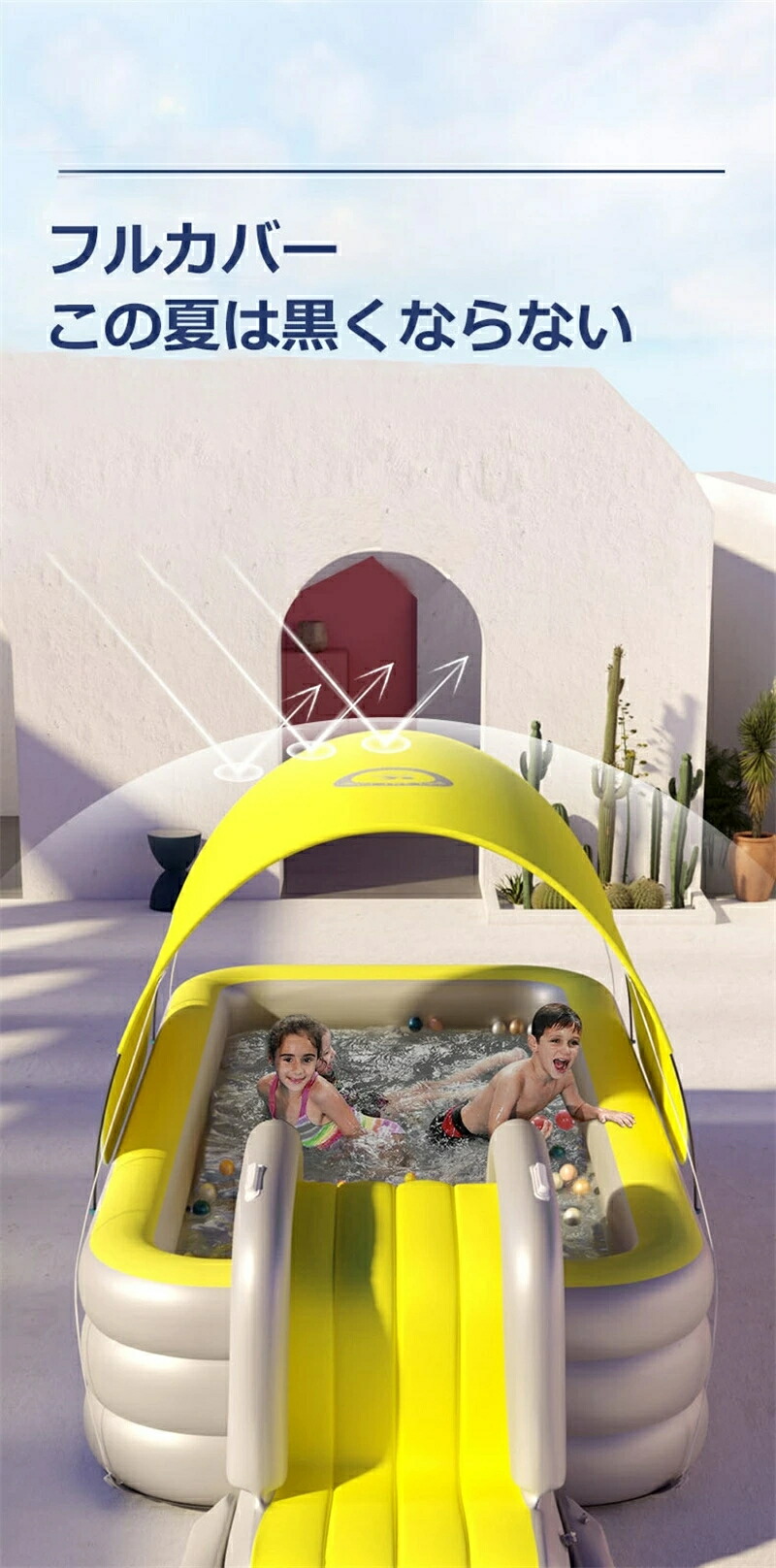 サンシェード付きのスイミングプールの紫外線遮蔽率は98%です。テクノロジーファブリックを採用しており、優れた耐光性と放熱性、優れた日焼け防止性能を持っています。日よけシェードを使用しないときは、 プールカバー として使用してプールを清潔に保つことができます。