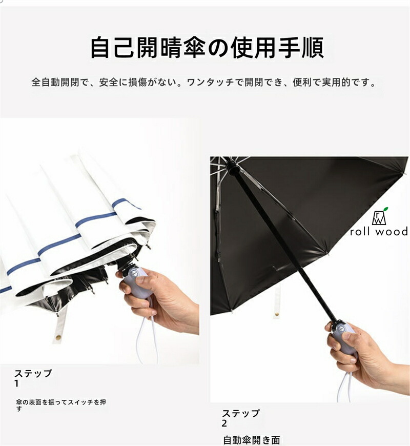 ワンタッチ自動開閉ができる折畳み日傘です。ボタンを押すだけで片手で素早く開け閉めができるため、車の乗り降りの際や、荷物で手がふさがっている時にとても便利です。日差しが強くなったときはサッと開いてすぐに紫外線をシャットアウト。外出がラクになる夏対策グッズとして普段からバッグや車に常備すれば、いつでも手軽に使うができます。