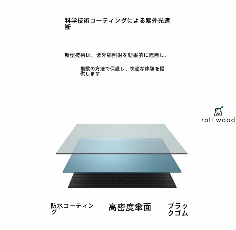JIS規格に基づく厳格なテストをクリアした完全遮光&100%UVカットを実現。高密度生地に多層遮光コーティングにより、強い日差しを遮り、紫外線を100%ブロック、光透過率0、UPF50+の日傘で、大切なお肌を守ります。熱線となる太陽光線をカットするため、ジリジリ日差しの中を歩いても、日陰ができたみたいに涼しく保ち、炎天下でも紫外線を恐れません。真夏を乗り切る日焼け対策・暑さ対策グッズに最適です。