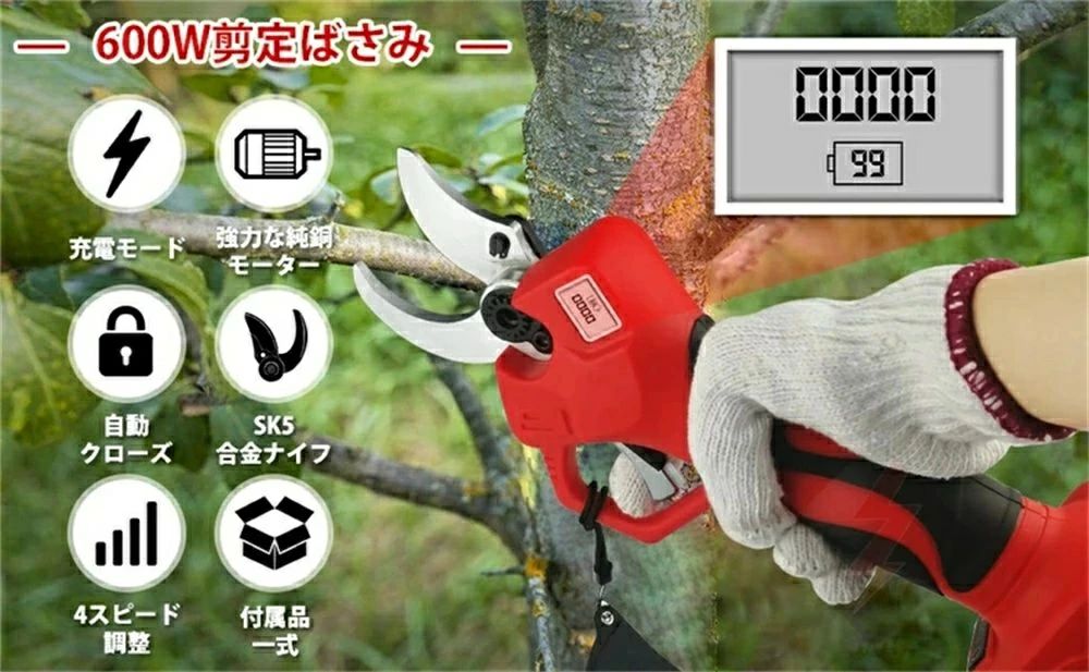 充電式剪定ばさみ コードレス 切断直径 1個 2個 延長ロッド無し 延長ロッド付き