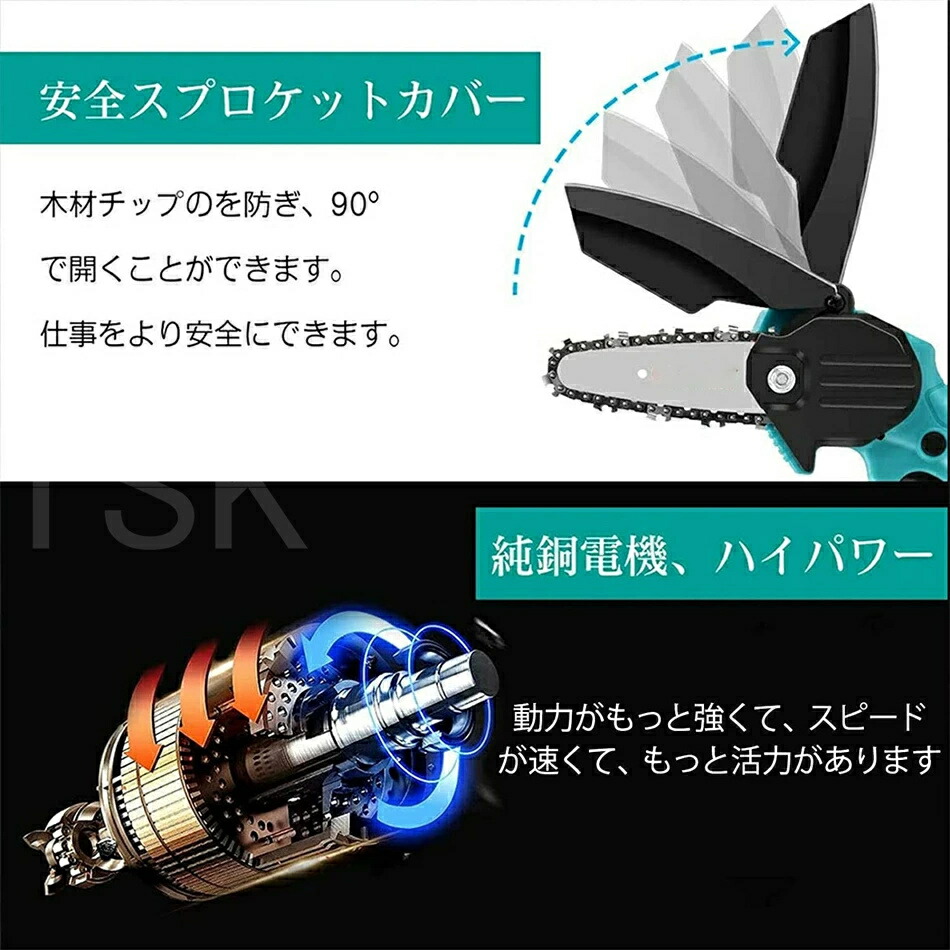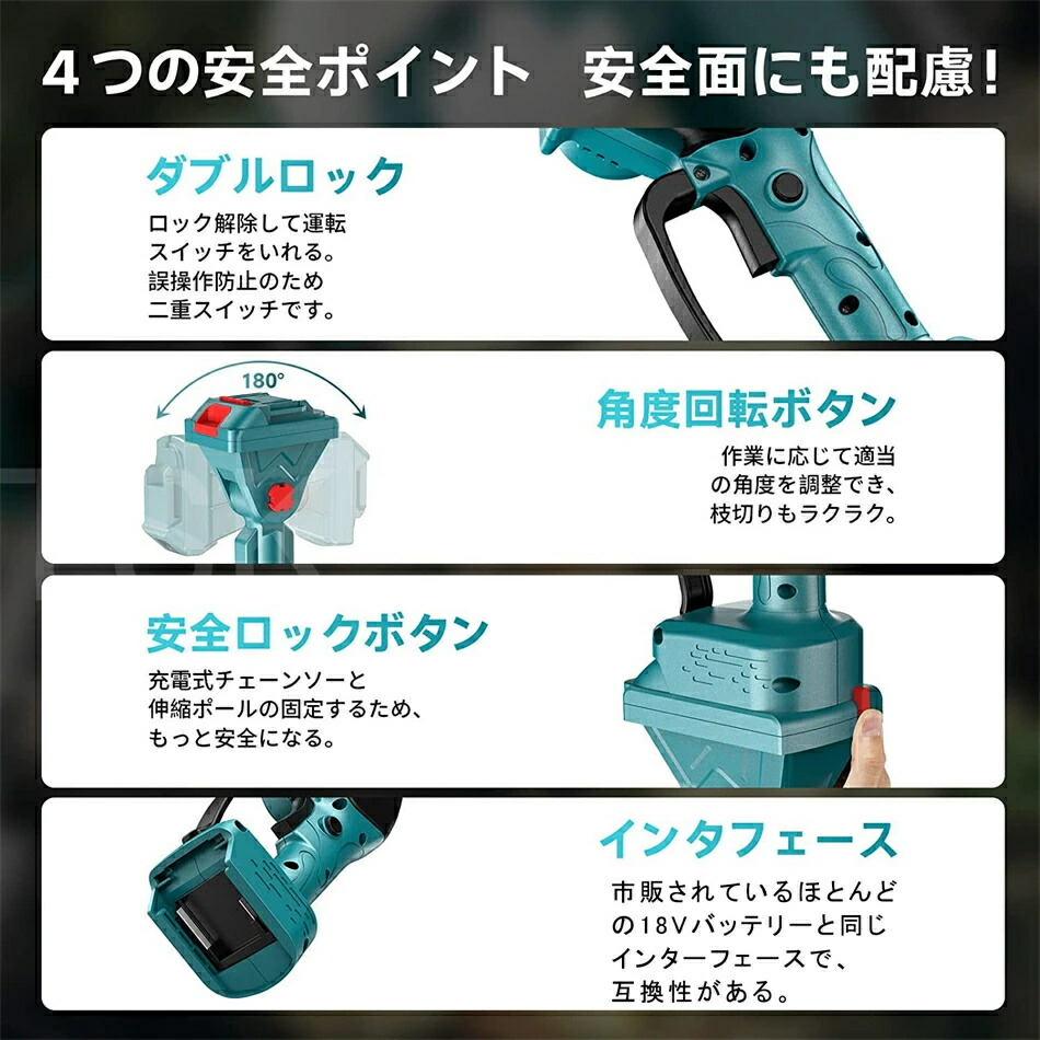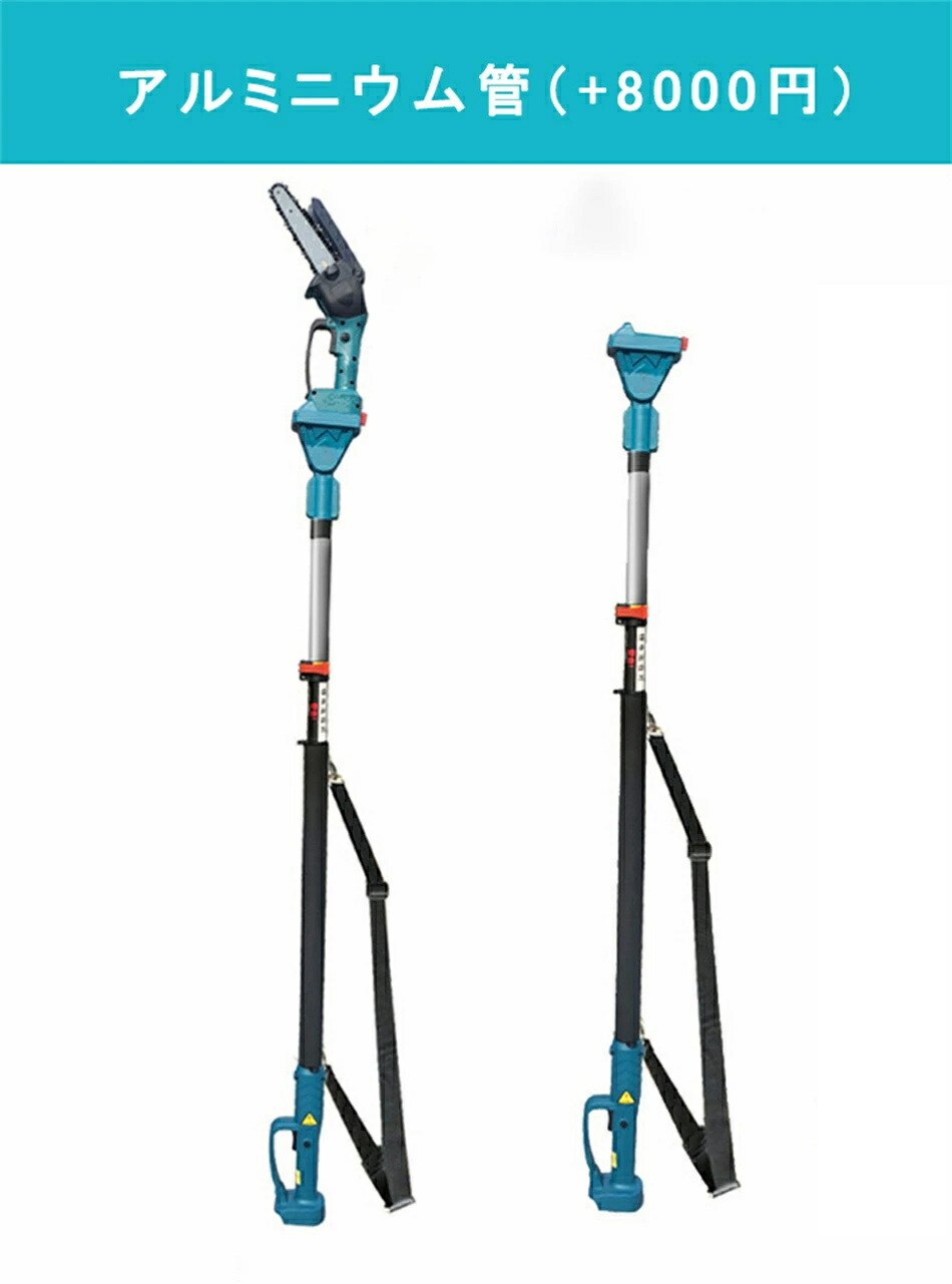 充電式 チェーンソー 高枝切り電動チェ チェンソー本体、アルミ管ない 本体+アルミニウム管 充電器1つ+バッテリ1つ 充電器1つ+バッテリ2つ