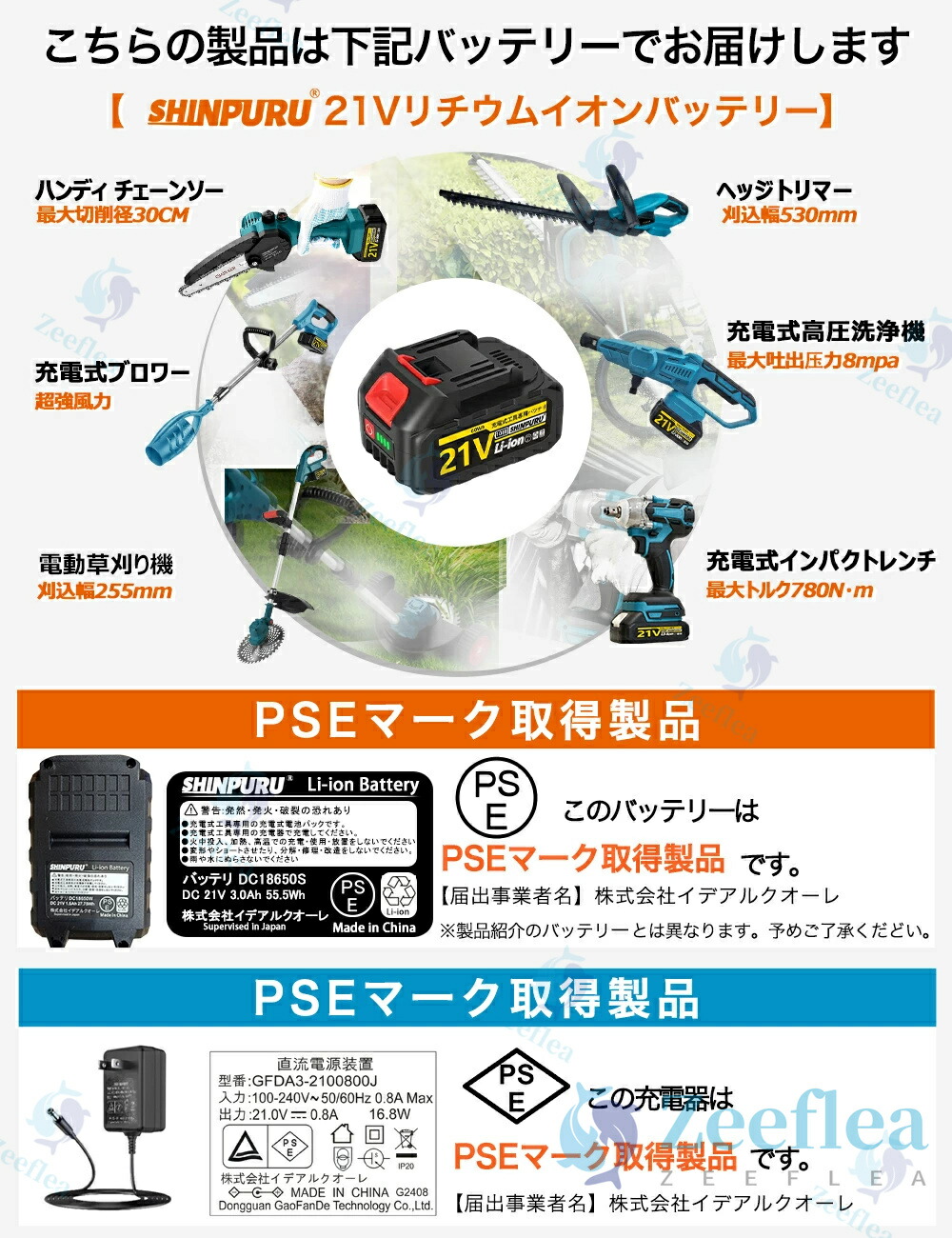 PSE認証済みで品質保証。安全起動装置(ダブル操作式)で誤作動を防止。作業中にハンドルを離すと即停止。過負荷保護機能搭載で、最大48時間連続稼働も可能です。