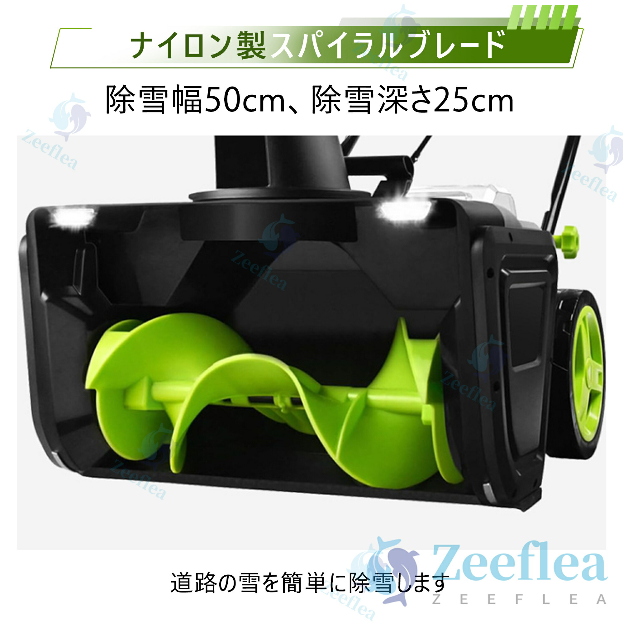 除雪機 手押し式 充電式 電動除雪機 コードレス除雪機 小型 家庭用 LEDライト付き 除雪器具 軽量 雪かき 電動スコップ 大容量バッテリー 除雪高25cm 除雪幅50cm 安全スイッチ