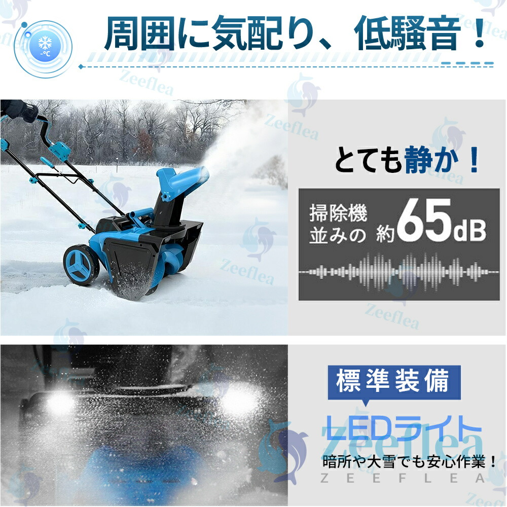 この電動除雪機は、双LEDライトを搭載しており、夜間や暗い場所でも道をクリアに照らします。最大7.6mの射程距離で、広範囲の除雪が可能です。さらに、除雪スコップ 電動と電動除雪機 コードレスの機能により、積雪や砂を効率的に掃除できます。2つのバッテリーが付属し、長時間の使用が可能。電動除雪機として、低騒音設計で周囲への影響を最小限に抑え、どんな場所でも使用できます。