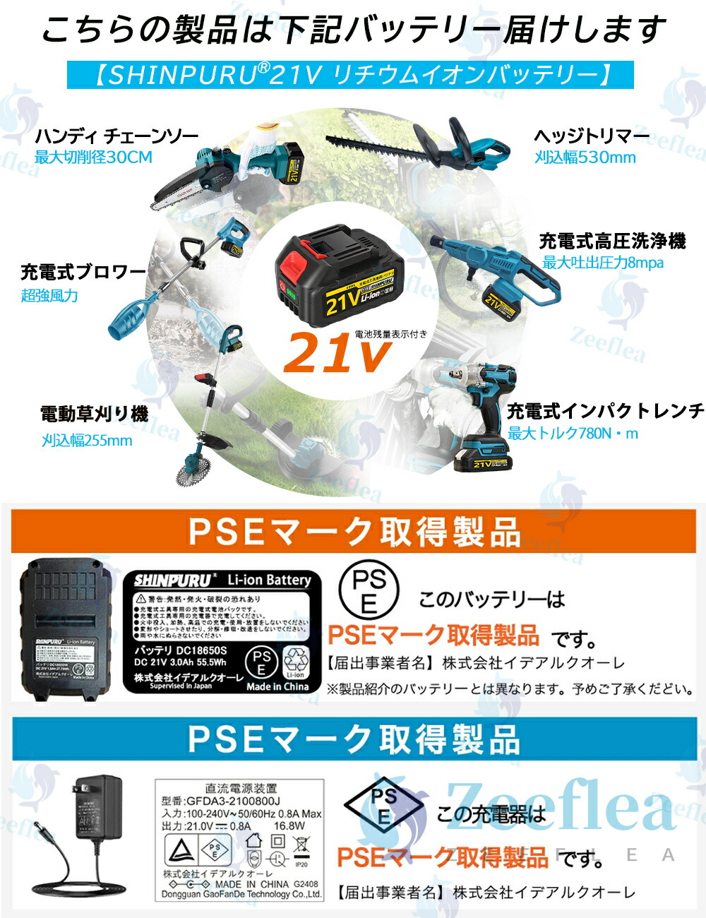 電圧: 21V、50/60Hz