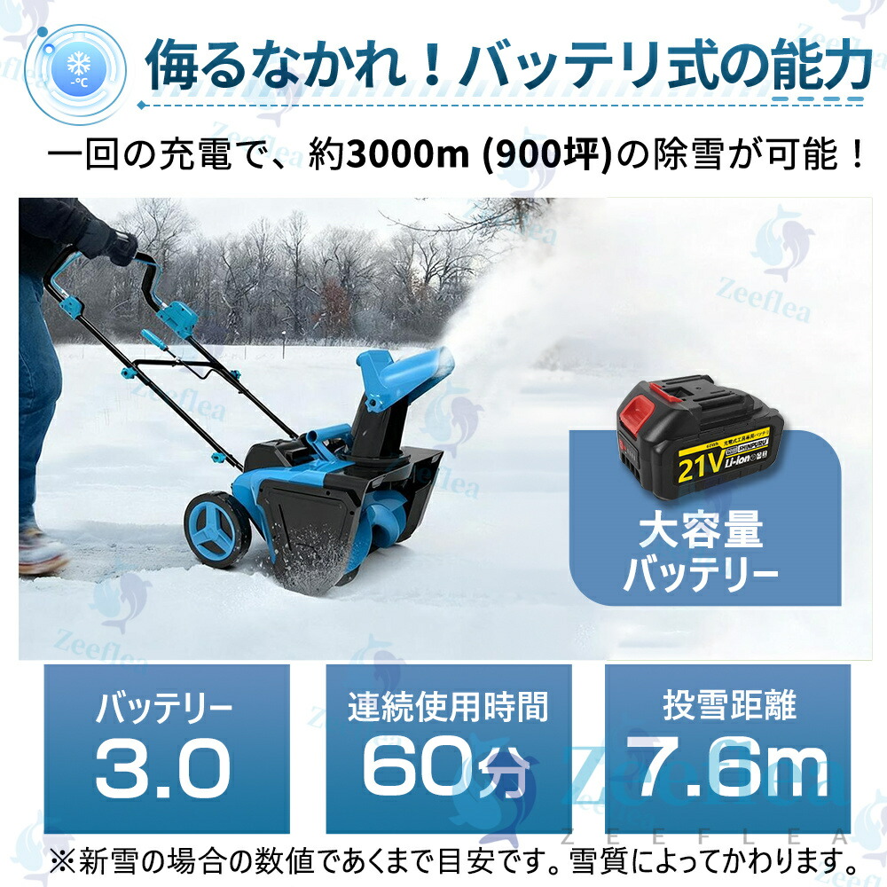 【大容量リチウムバッテリー & 高性能この電動除雪機】