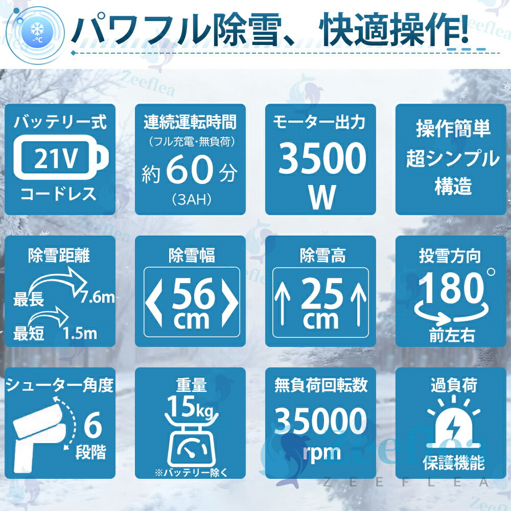 除雪機 充電式 小型 手押し式 電動除雪機 コードレス除雪機 家庭用 LEDライト付き 除雪器具 軽量 電動除雪スコップ 操作簡単 安全スイッチ 自走式電動除雪機 大容量バッテリー 21V 除雪幅56cm 除雪深33cm 射程距離7.6m 降雪 清掃 投雪 駐車場 保管が簡単 女性 便利 PSE取得