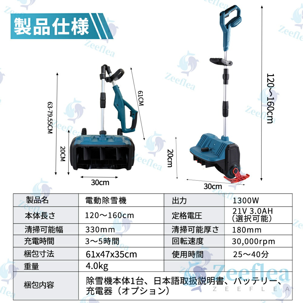 雪かき 電動除雪機 除雪機 充電式 コ ブラシモーター ブラシレスモーター バッテリー・充電器別売 3.0Ahバッテリーx1個+充電器x1個 3.0Ahバッテリーx2個+充電器x1個 3.0Ahバッテリーx3個+充電器x1個 3.0Ahバッテリーx4個+充電器x1個 3.0Ahバッテリーx5個+充電器x1個 3.0Ahバッテリーx6個+充電器x1個 3.0Ahバッテリーx7個+充電器x1個 3.0Ahバッテリーx8個+充電器x1個