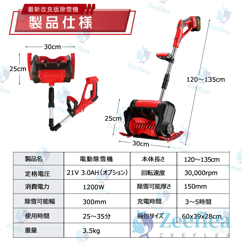 除雪機 充電式 コードレス除雪機 電動除雪機 雪かき 電動 スコップ コードレス 家庭用 除雪幅30cm 3.0AH 21V バッテリー 電動除雪スコップ ショベル 雪かきスコップ 除雪器具