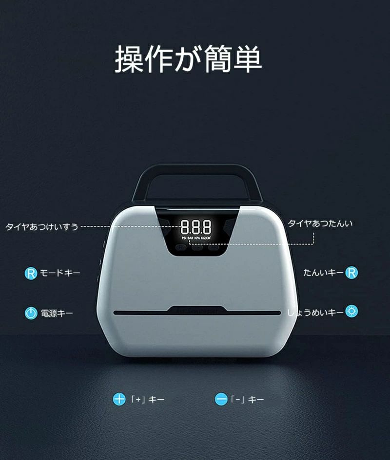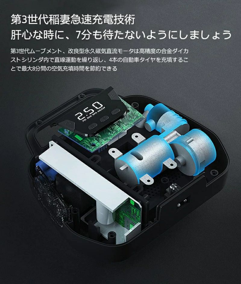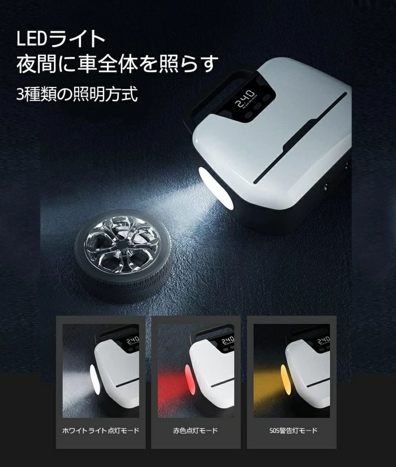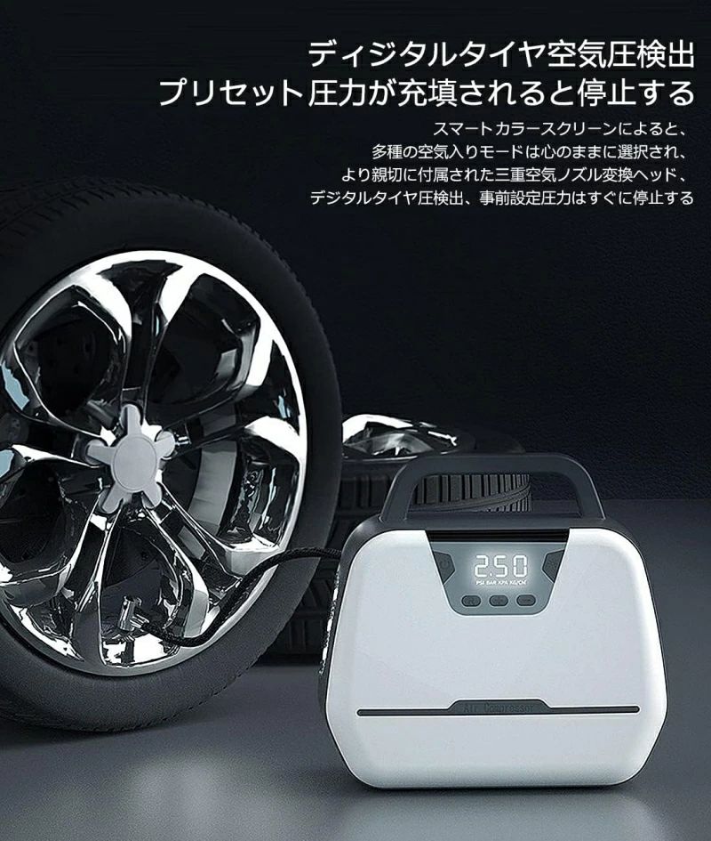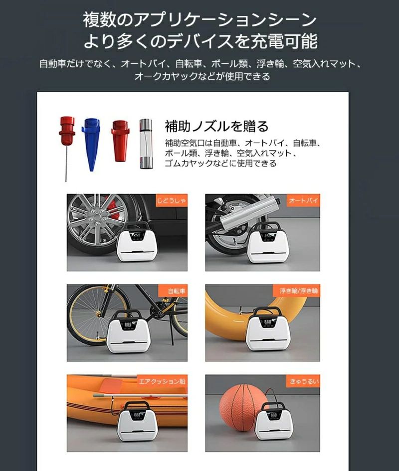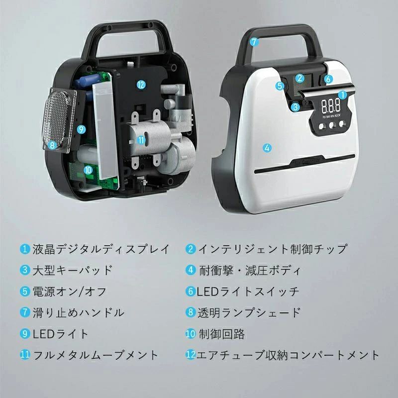 ヤ空気入れ LEDライト 自動停止 パワー・バンク搭載 空気圧指定可能 LCDデジタル表