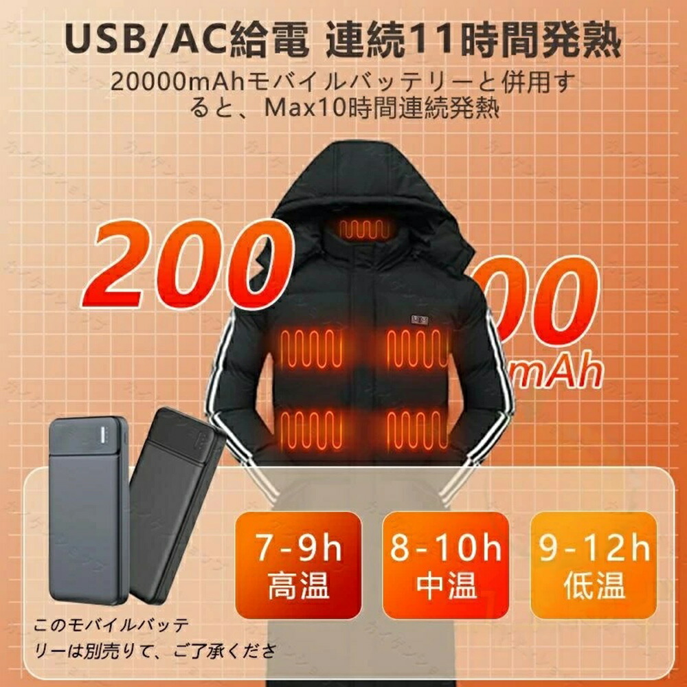 ベンチコート 電熱 メンズ 暖かい レ スポーツウェア アクセサリー ベンチコート メンズベンチコート 新作 服のみ 服+20000mah*1 服+20000mah*2 M L XL 2XL 3XL 4XL