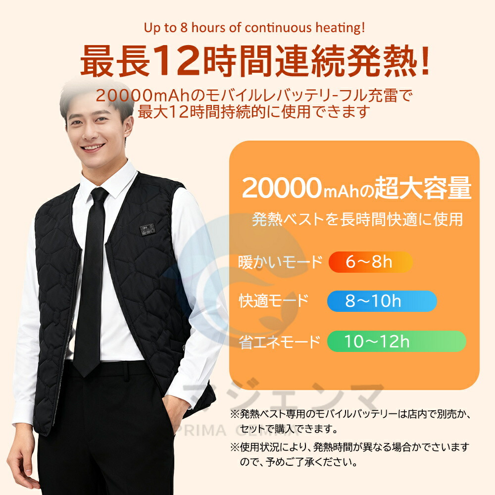 セット内容:電熱ベスト*1、日本語取扱説明書*1、20000MAHモバイルバッテリー*1(別売り)、ギフトバッグ