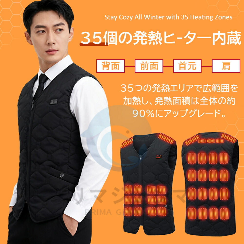 電熱ウェア 電熱ベスト ヒーターベスト 35エリア発熱 大きいサイズ S-7XL バッテリー付き 高品質 発熱ベスト 日本製ヒーター ベスト おすすめ 速暖 水洗い可 ヒートベスト 防寒着
