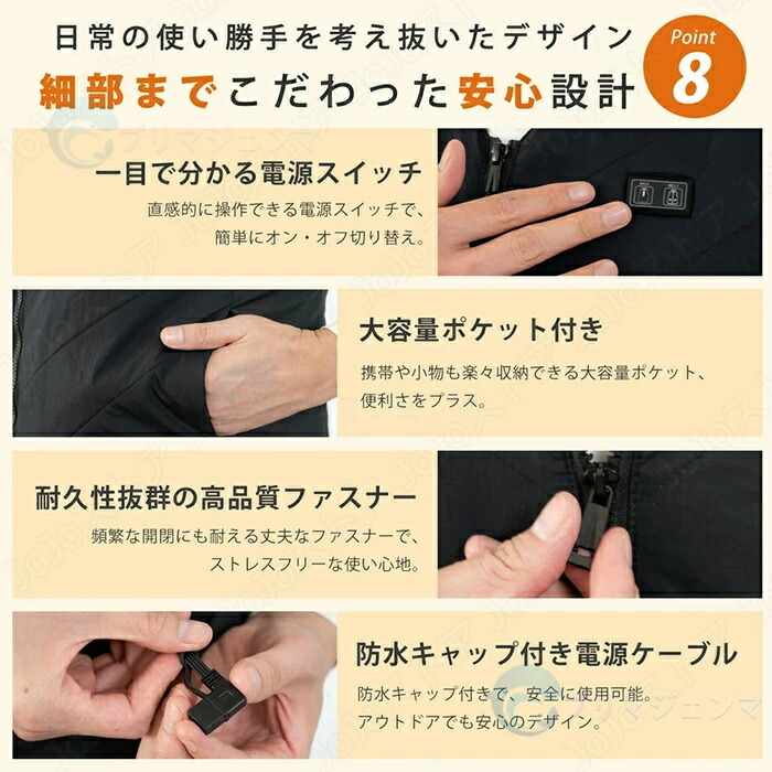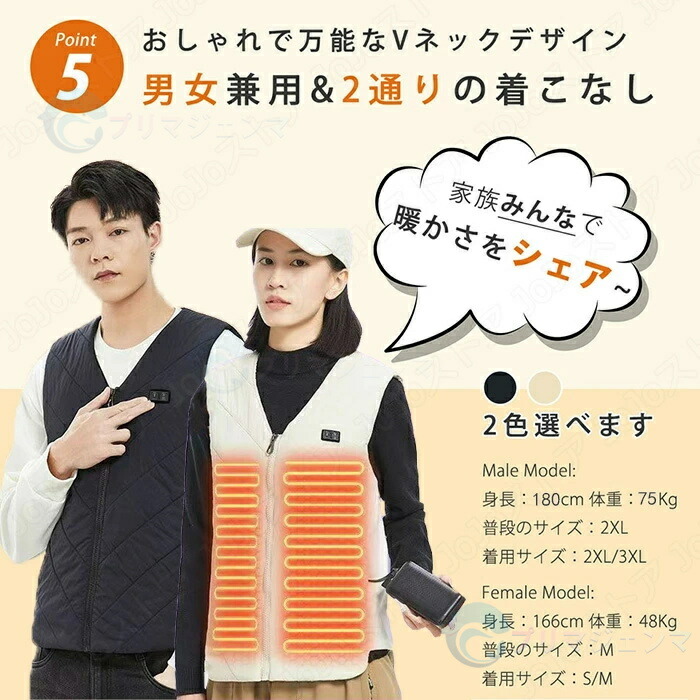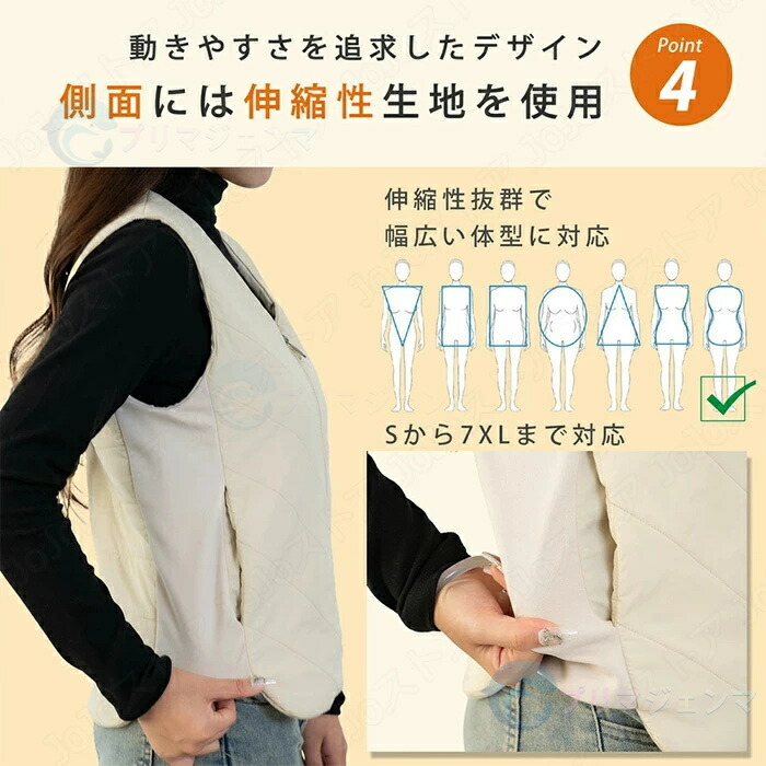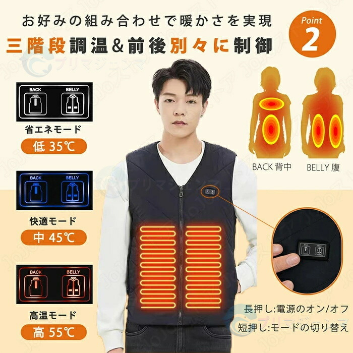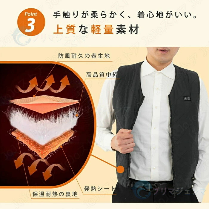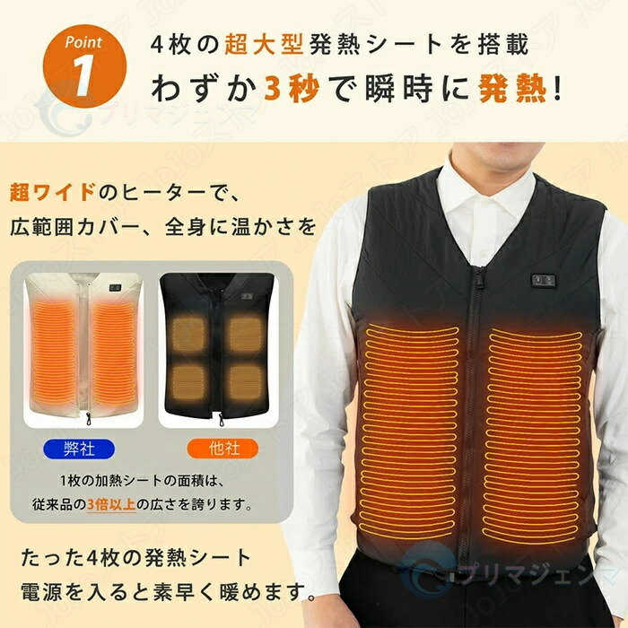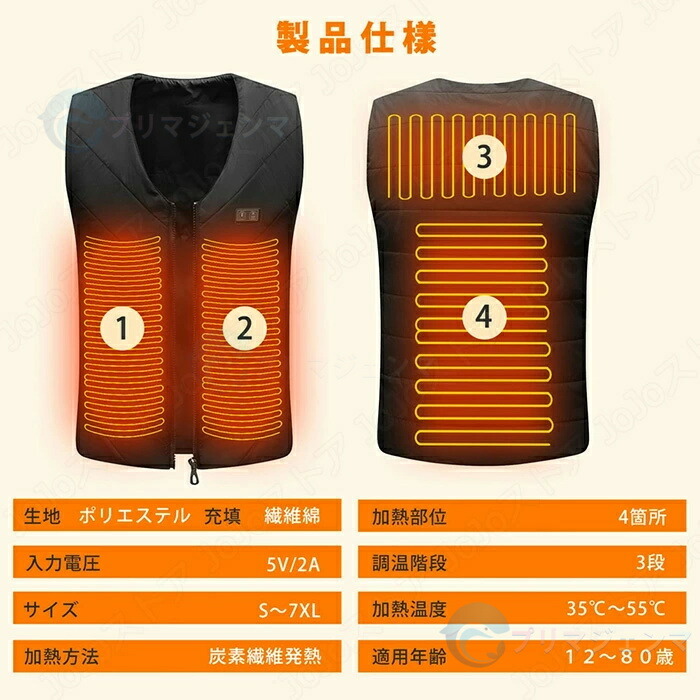 電熱ベスト 日本製 繊維ヒーター 4エ トップス ベスト ジレ 豊富 ホワイト ブラック 服のみ 服+20000mah*1 服+20000mah*2