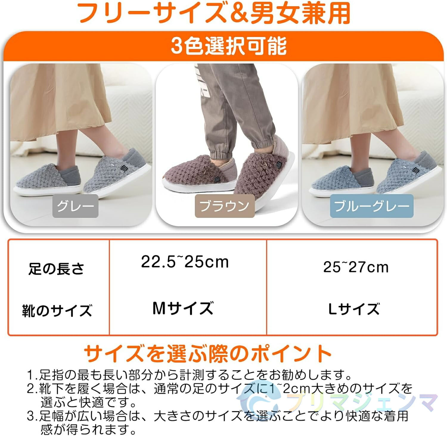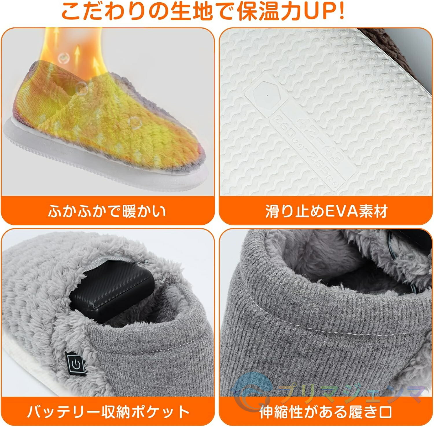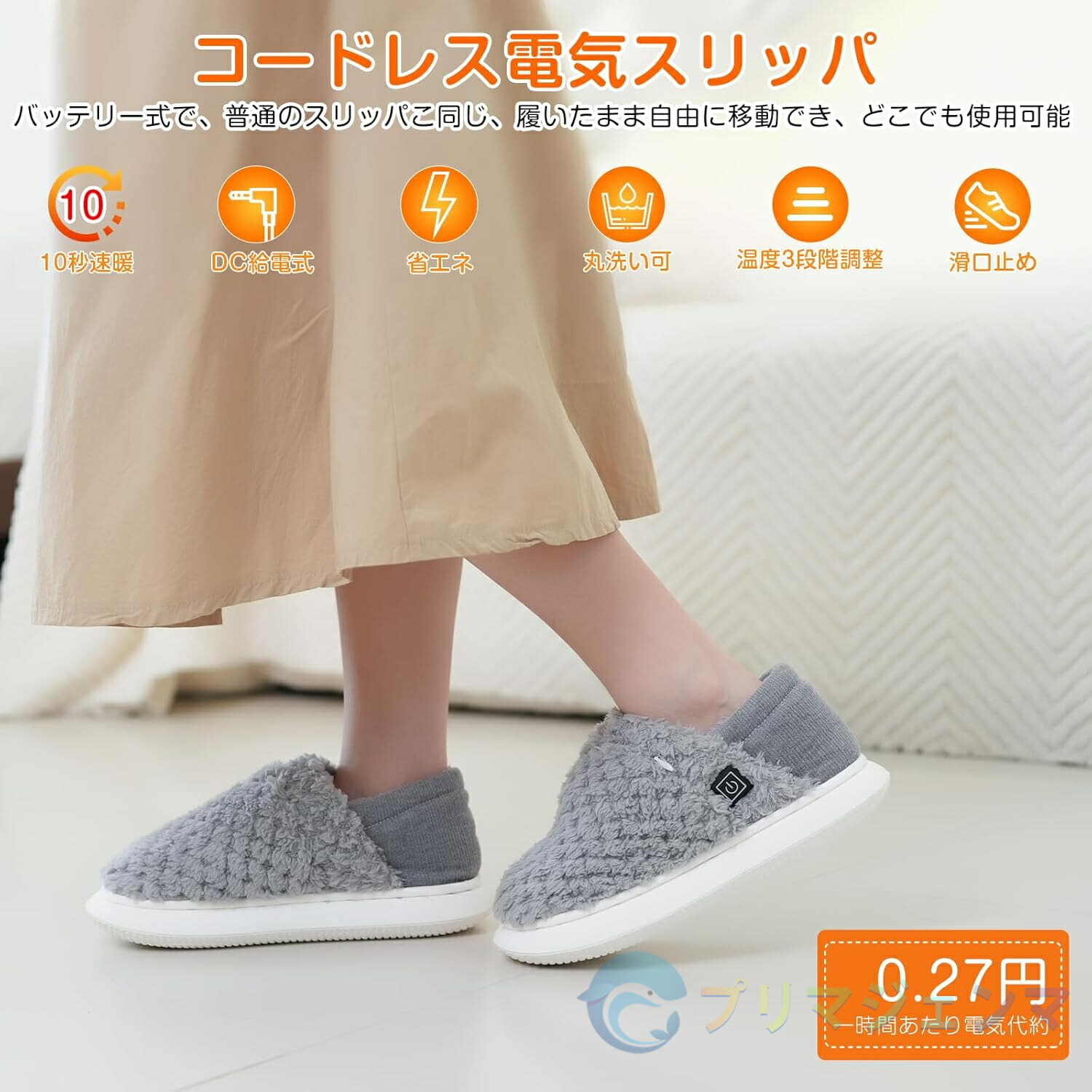 電気スリッパ コードレス 10秒速暖 グレー ブラウン 不要 10000mahモバイルバッテリー*2